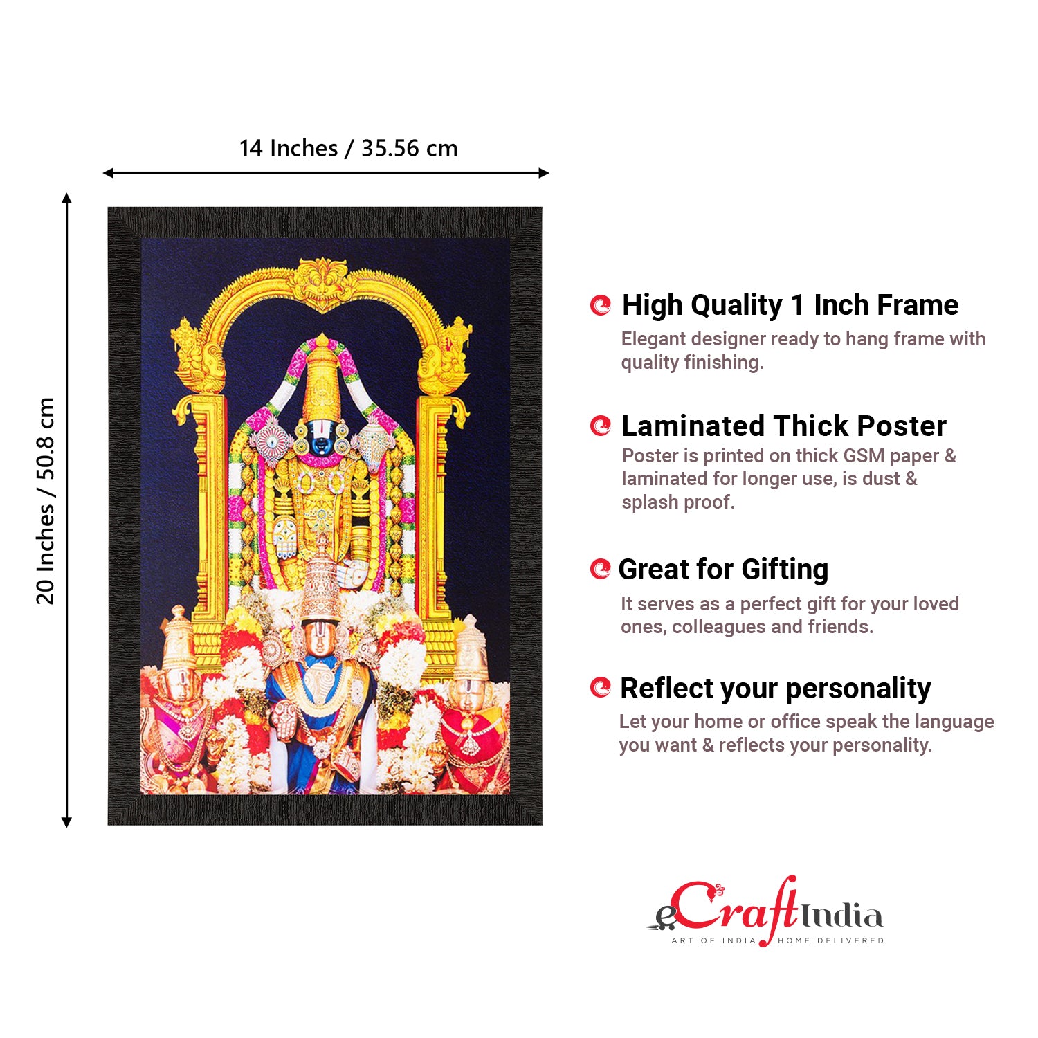 Product Description - Lord Balaji also understood as Venkateswara is known as the childhood form of Lord Hanuman and is revered in several parts of India. Our framed paintings depict spirituality creatively. These stand as a great gifting option when it comes to your family & friends when it comes to several auspicious celebrations. Our Lord Balaji UV matt textured framed paintings are available in types as well that will help you incorporate the wall religiously. Each design reflects the artistic qualities and time one has taken to design this painting. These frames don't include glass so it is very lightweight and wet cloth can be used to clean them.