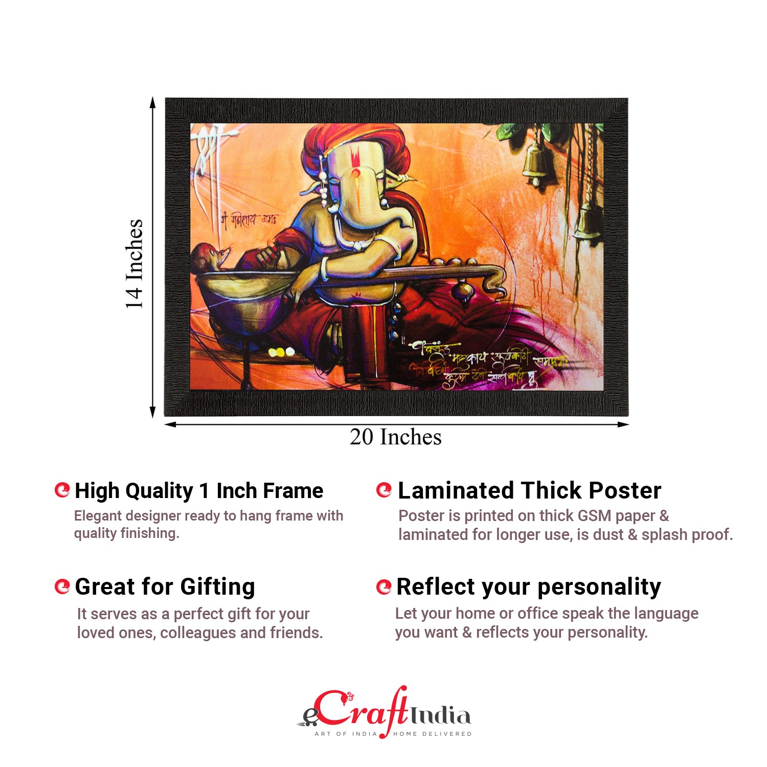 Product Description - Decorate your home & office walls with these artistic design Satin Matt Texture Framed UV Art Painting from eCraftIndia. Each design reflects the artistic qualities and time one has taken to design this painting Exquisitely printed and framed, it is also a perfect gifting option for your colleagues, loved ones and family members. These frames don't include glass so it is very light weight and wet cloth can be used to clean it.