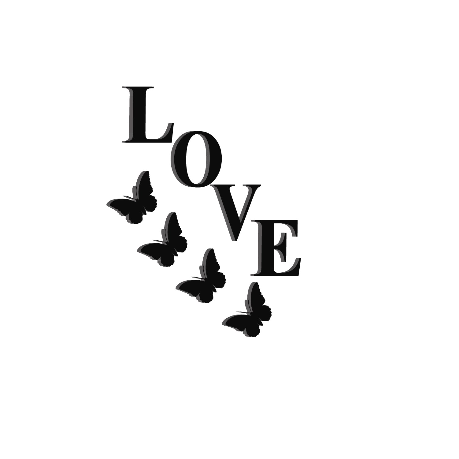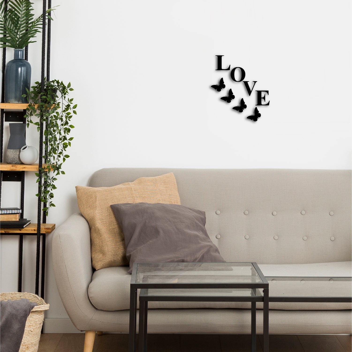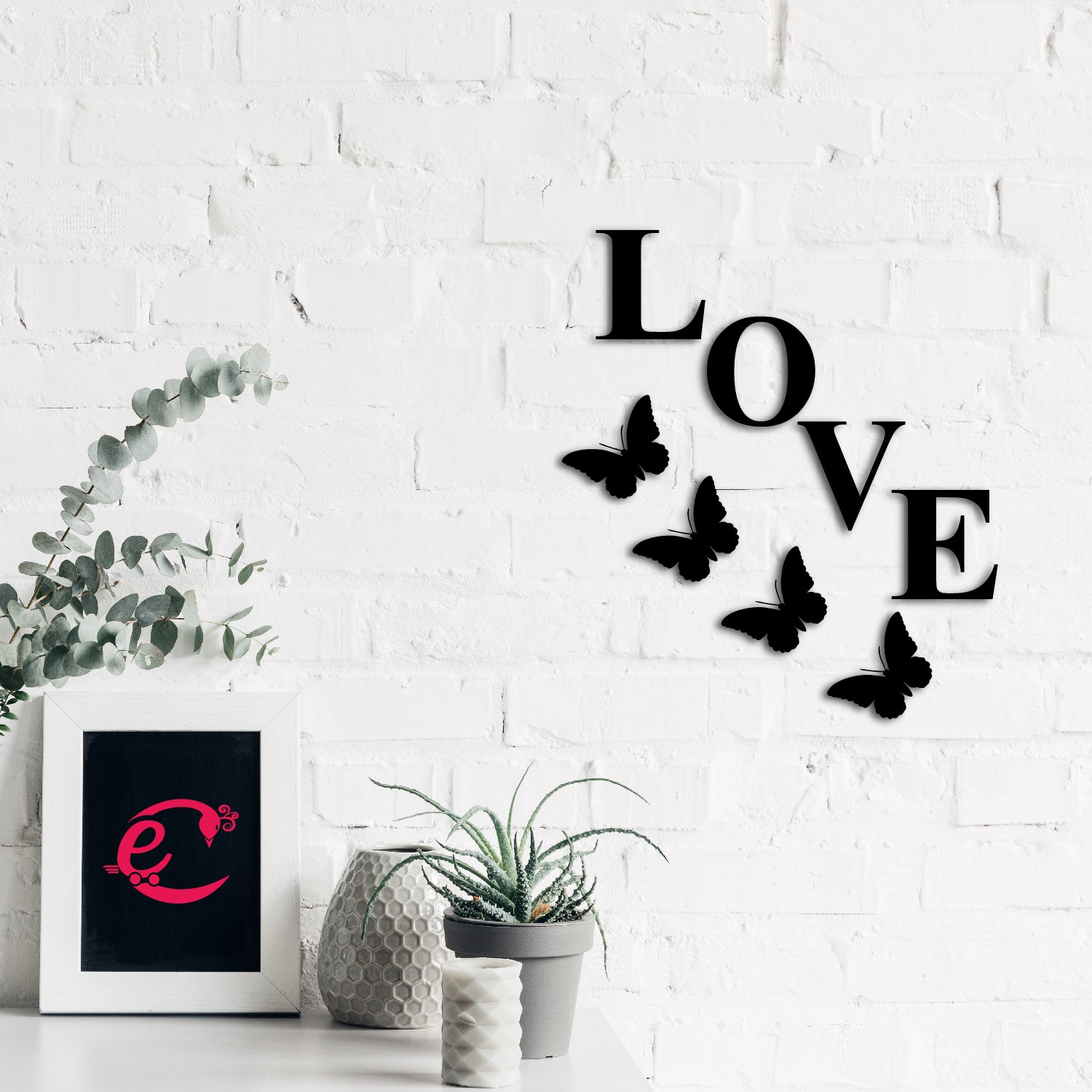 Package Content - One "Love with Butterfly" Black Engineered Wood Wall Art Cutout, Ready to Hang Home Decor