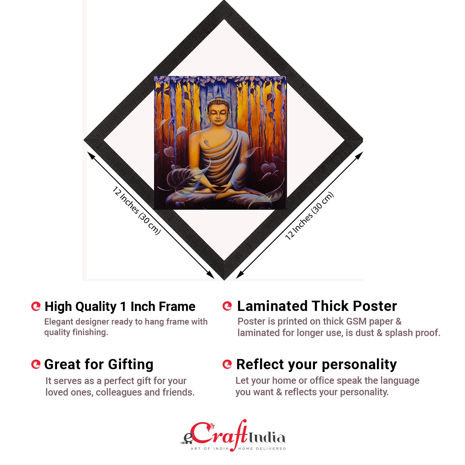 Product Description - Wish to incorporate religious spiritual wall art even when you have contemporary home decor? If yes, then our range of decorative Lord Buddha framed digital wall art that is available in various colors & patterns depicting Lord Buddha's traits. Therefore, these framed wall paintings make a great gift option for your family & friends, especially for the ones that believe in harmony & calmness. Our Lord Buddha UV matt textured framed paintings are available in sets as well that will help you incorporate the entire wall space creatively. Each design reflects the artistic qualities and time one has taken to design this painting. These frames don't include glass so it is very lightweight and wet cloth can be used to clean them.