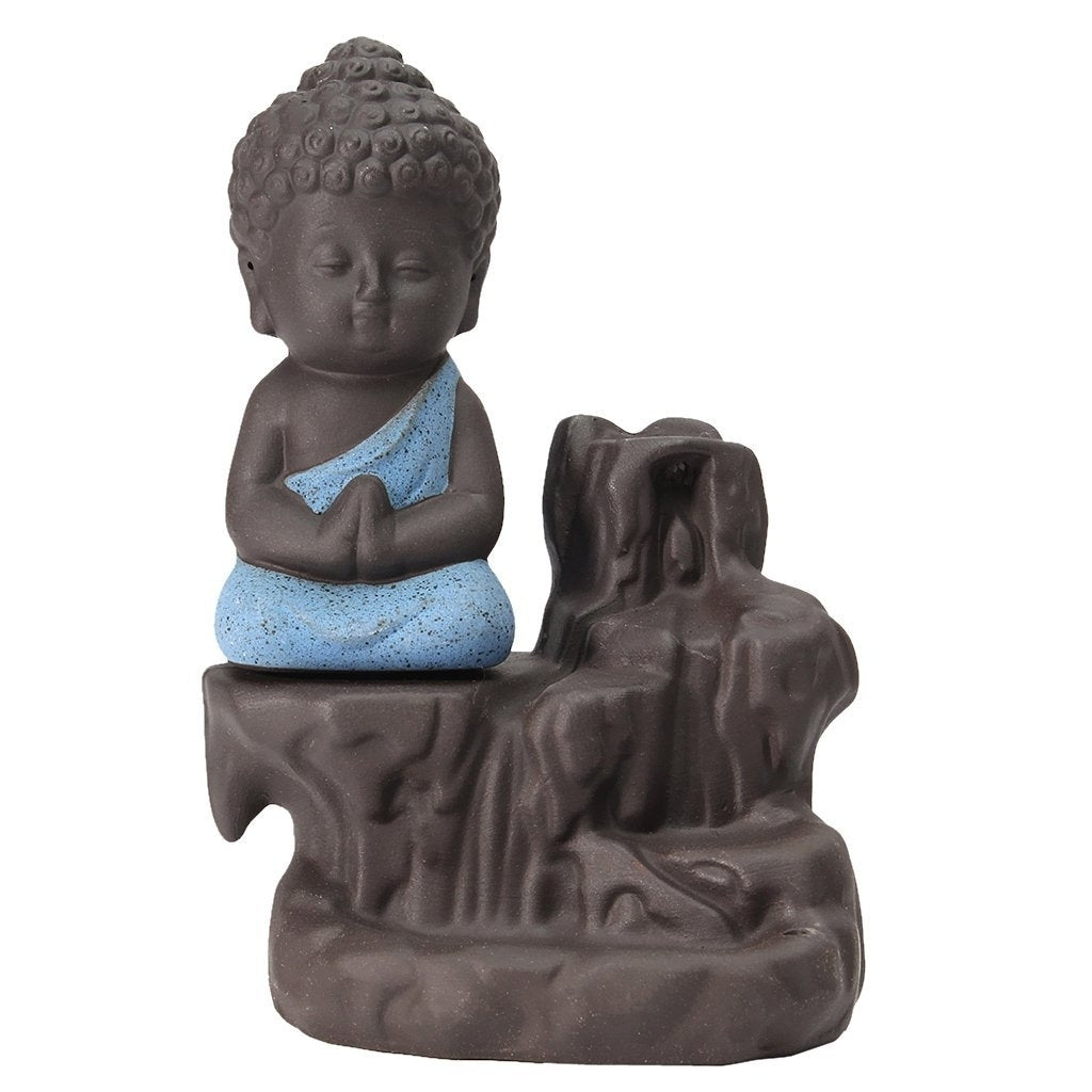 Product Description - Complete your home place with God idols and figurines has been there for ages now and still continues to be there. Back-flow incense burner creates an illusion of a Smokey waterfall. This piece of art has lord Buddha sitting and meditating beside the waterfall. Simply place an incense cone at the top of the waterfall, and with the cone's special properties, the smoke starts to flow in the reverse direction, that is from top to bottom, and in turn, creates a beautiful Smokey waterfall. Everyone wishes to hold God's idols in their home as it is said to bring positive energy and good vibes. And you can bring the same spirituality to your home with eCraftIndia's Blue & brown Meditating Monk Buddha Smoke Backflow Cone Incense Holder Decorative Showpiece with 10 free Smoke Backflow Scented Cone Incenses that comes in blue and brown color. This showpiece is handcrafted intricately by our skilled artisans and is the best to keep at the entrance of your home or office and can also be given as gifts to your loved ones.