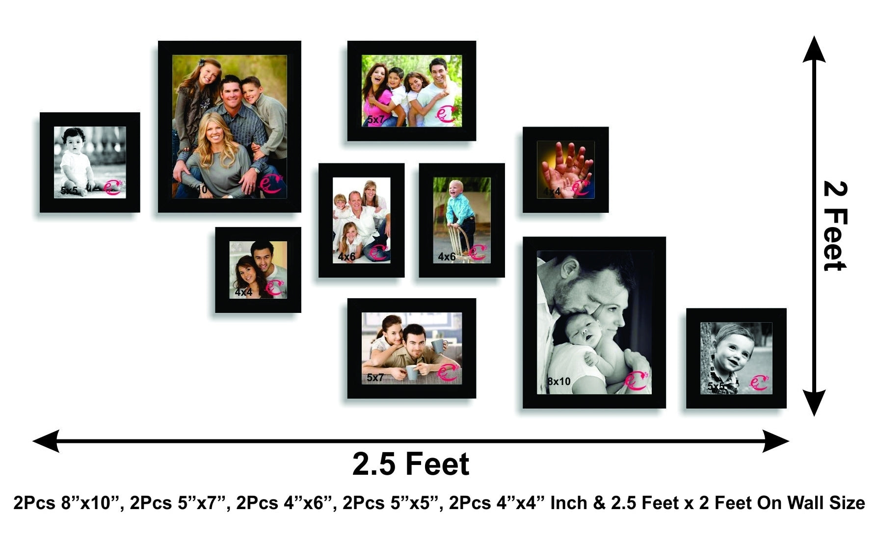 Product Description - Keep your memories alive, choose your favorites and make a designer collage for your walls with these elegant & premium individual photo frames of different sizes from eCraftIndia. It is a perfect decor piece to break the monotony of your walls. These photo frames with their subtle grace is made from high quality synthetic wood that is light in weight. Whether you want to glorify your wall, gift it to someone special, or use it for corporate gifting, End User can make lot of combinations using these photo frames. This orientation has 10 black photo frames. Frame size is 1 inch. This Collage Photo Frame set has 2 frames for picture size 4 Inch x 4 Inch, 2 frames for picture size 5 Inch x 5 Inch, 2 frames for picture size 8 Inch x 10 Inch, 2 frames for picture size 5 Inch x 7 Inch, 2 frames for picture size 6 Inch x 4 Inch. eCraftIndia offers you complete solution for all your home decor & Gifting requirements. NOTE - Rectangle Frames for picture size 8 Inch x 10 Inch, 5 Inch x 7 Inch and 6 Inch x 4 Inch can be used in both directions i.e. Horizontanlly and Vertically.