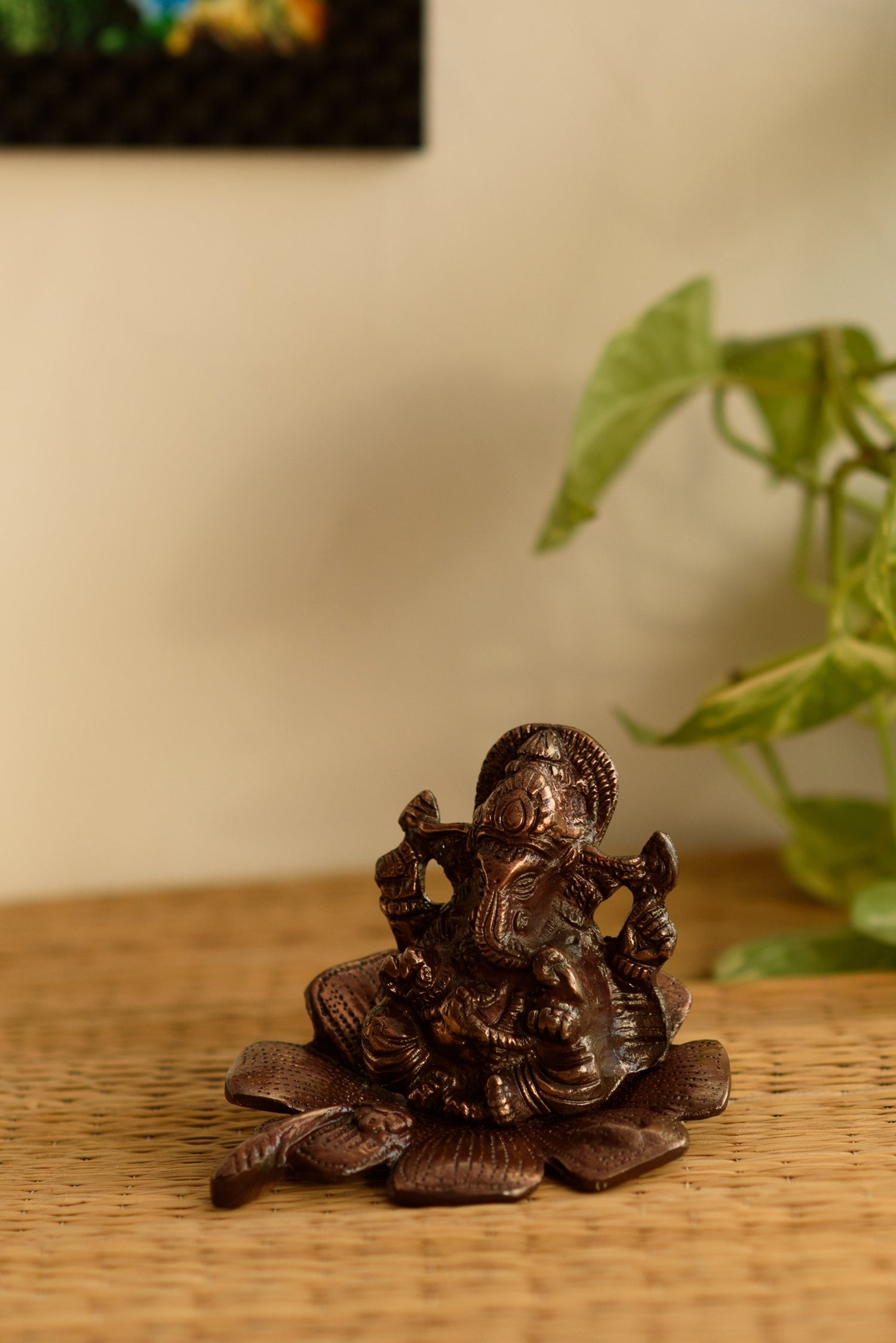 Product Description - Presenting to you a beautifully crafted metal effigee of Lord Ganesha seated on a Flower. Bring home or gift this precious embodiment of devotion & excellent art work which is indeed special. Keep it in your pooja room or gift it to your friends and family, the blessings will always touch the soul of the beholder. This metal lord ganesha statue has been diligently handcrafted by skilled artisans from the house of eCraftIndia using various traditional techniques.