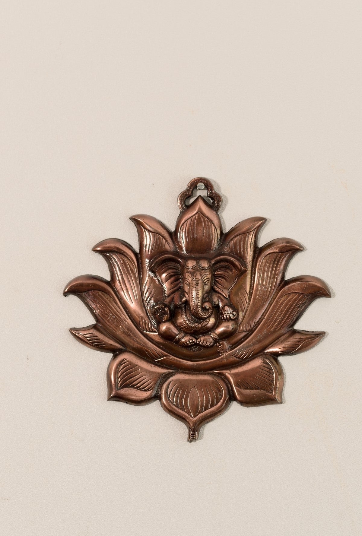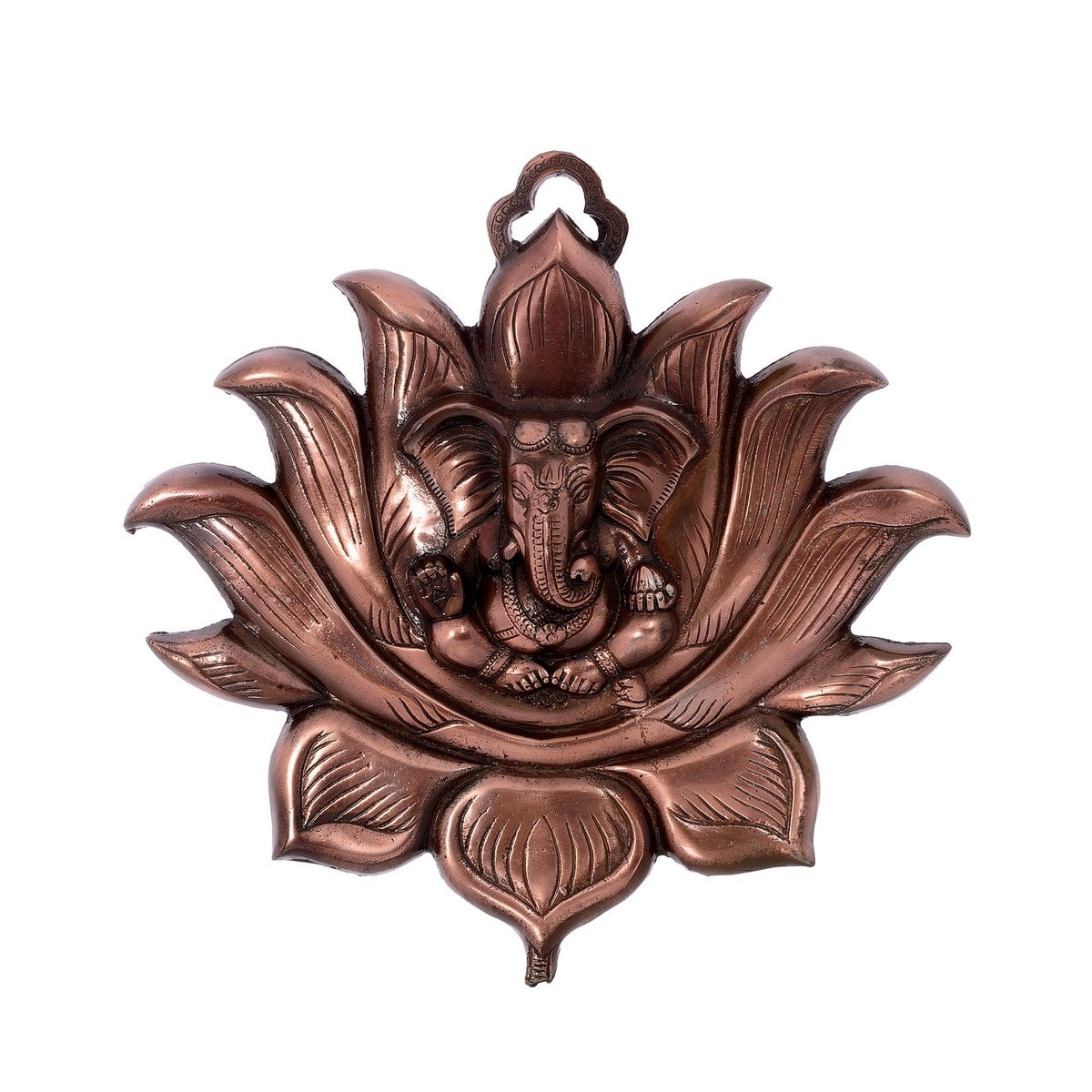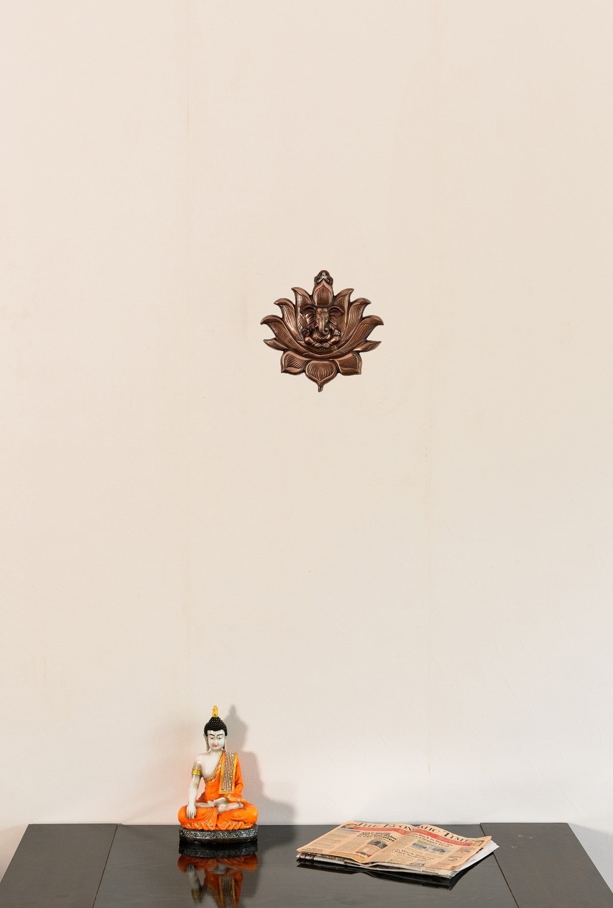 Product Description - When you want to invite good luck, good fortune, and prosperity into your home, you need to bring home a Ganesha and with this metal Ganesha, you will also bring style to your interiors. A fine sample of craftsmanship of Indian artisans, this Brown Lord Ganesha on lotus wall hanging has been made using metal that has a brown color and gives it a really elegant and sophisticated look. Whether you want to hang it in your living space, your pooja room, or even your entrance foyer, you can be sure that it will attract a lot of attention and positive vibes. Exquisitely designed and intricately crafted, it makes for a perfect gifting option. You can find many more wall hangings in different patterns on our online portal in various colors that suit your home or office interior.