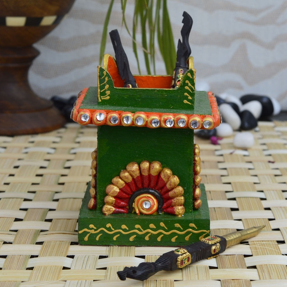 Product Description - Make your office desk, children's desk and computer table look fantastic with this glamorous "Papier-Mache Embossed Pen Stand" by eCraftIndia. Crafted with Papier-Mache, it is embellished with Meenakari and kundan work that is complemented by expert enamelwork. eCraftIndia pen stands are fantastically crafted with classical designing by our skilled craftsmen giving it a eye catching look. Each piece reflects the artistic qualities and time one has taken to shape these appreciative decors. Exquisitely designed and intricately crafted, it makes for a perfect gifting option.