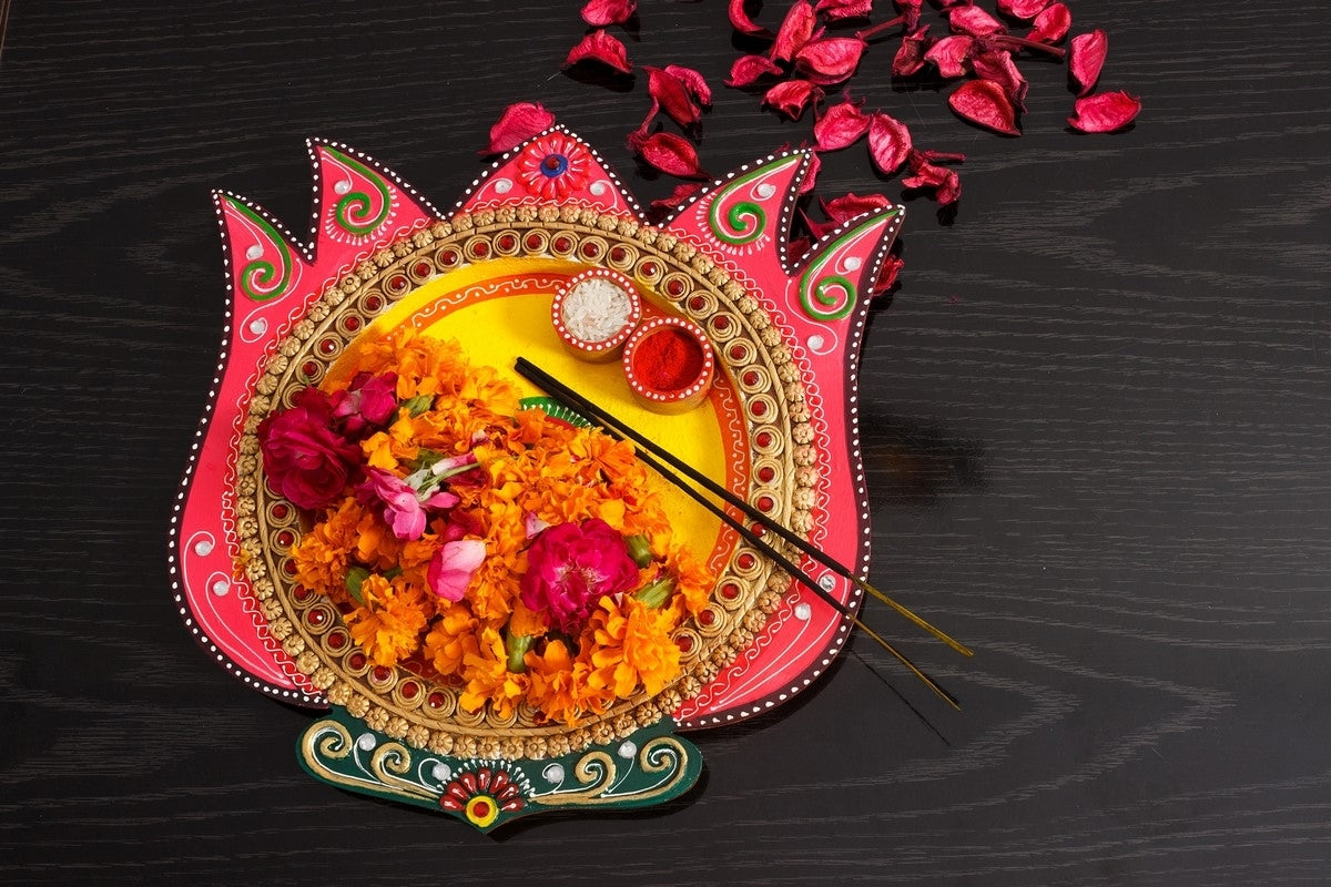 Package Content - One Papier-Mache Lotus Design Multiutility Pooja Thali