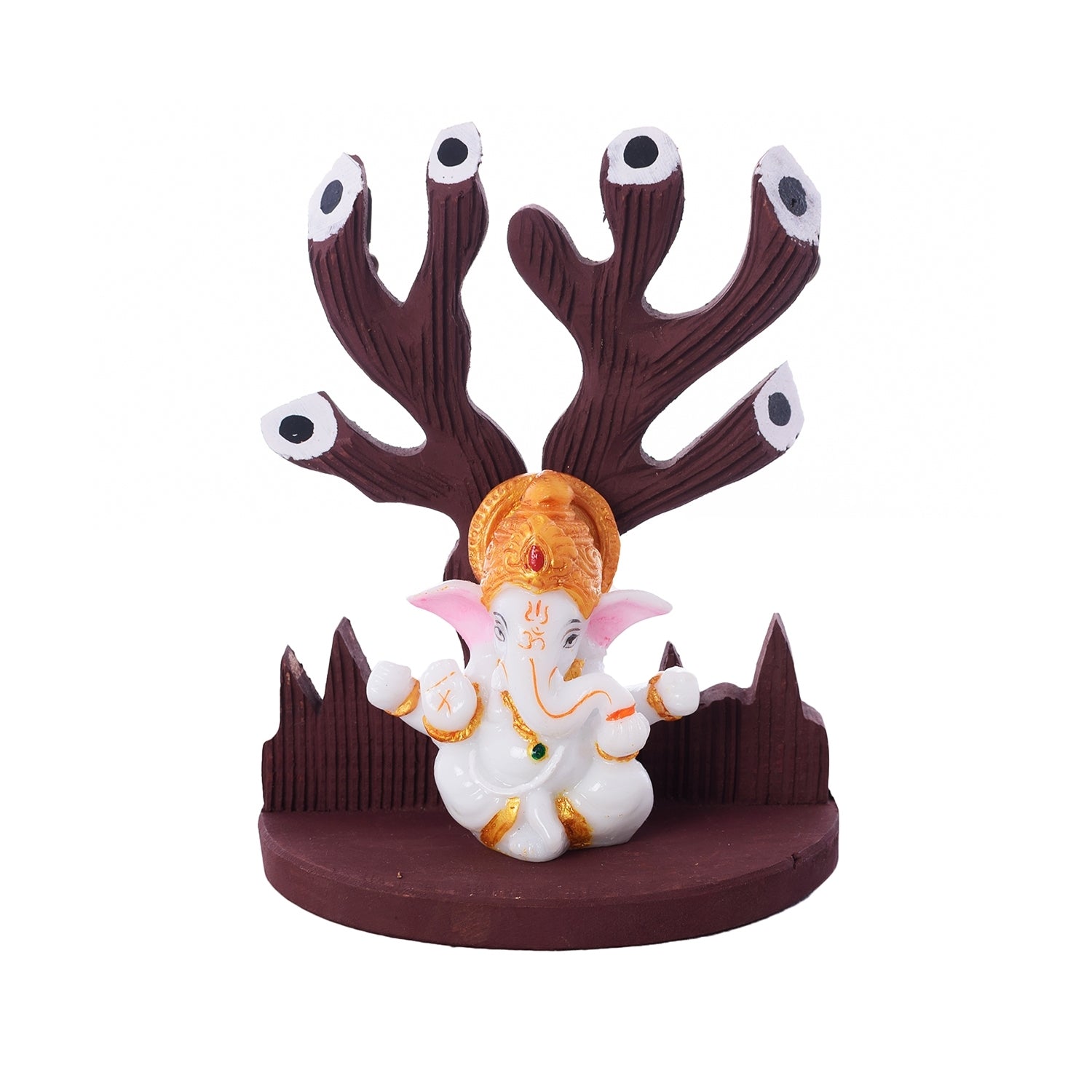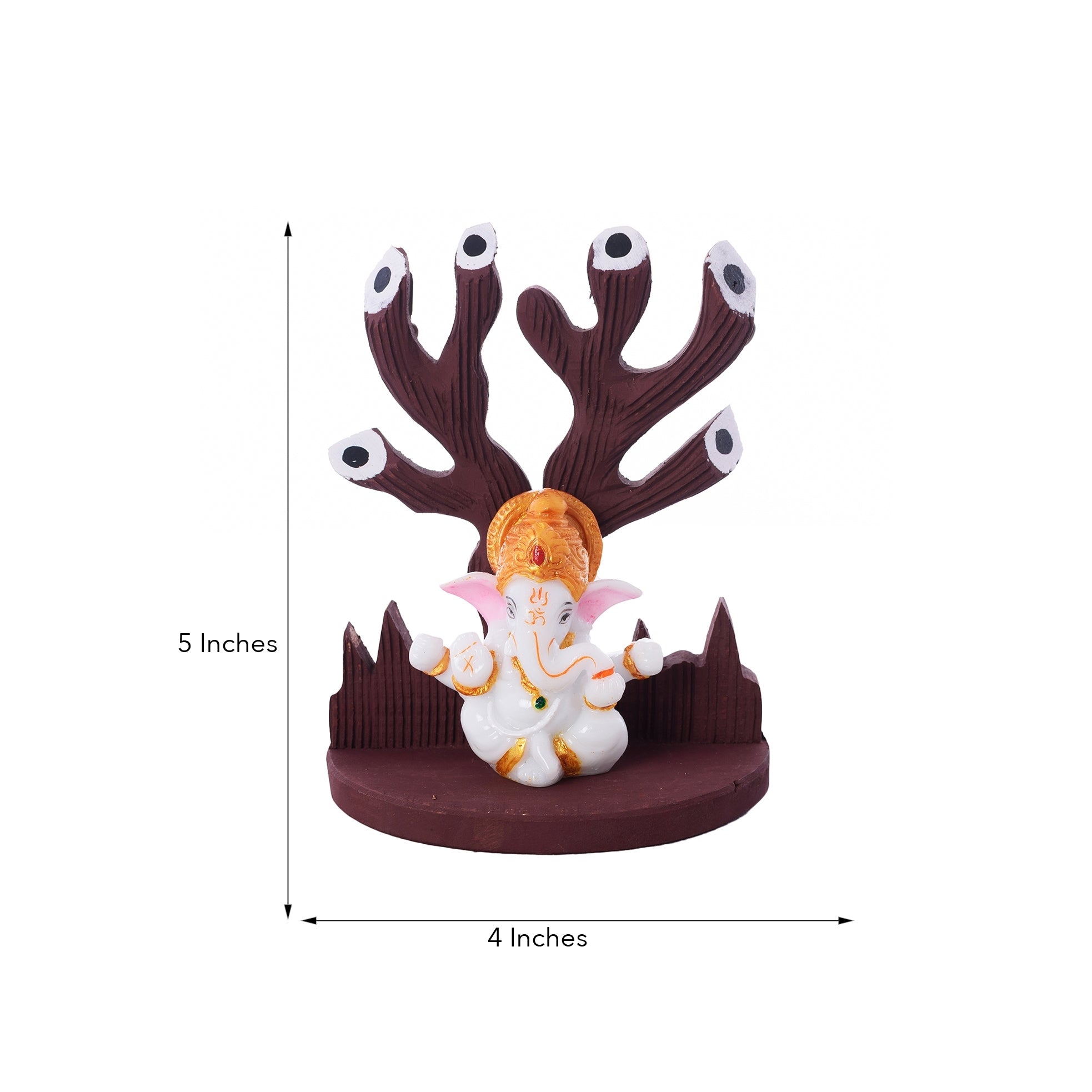 Package Content - 1 Polyresin Paghdi Lord Ganesha Under Wooden Tree Figurine