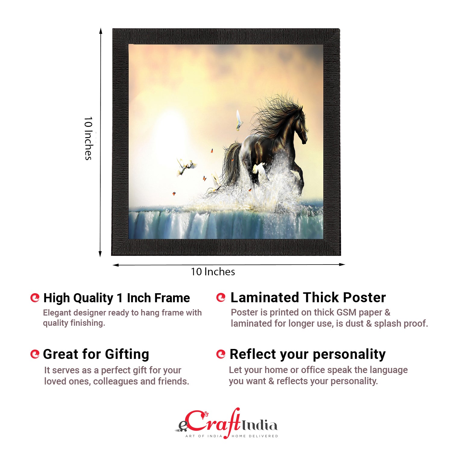 Product Description - Decorate your home & office walls with these artistic design Satin Matt Texture Framed UV Art Painting from eCraftIndia. Each design reflects the artistic qualities and time one has taken to design this painting Exquisitely printed and framed, it is also a perfect gifting option for your colleagues, loved ones and family members. These frames don't include glass so it is very light weight and wet cloth can be used to clean it.