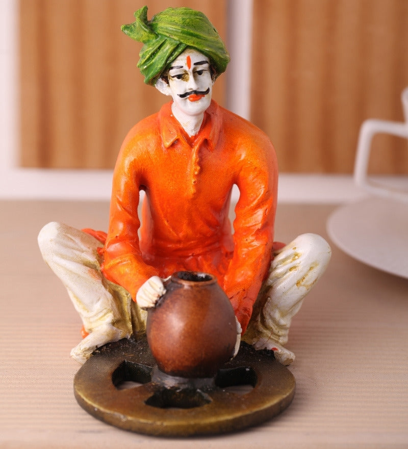 Package Content - One Rajasthani Craftman Making Pot Handcrafted Decorative Polyresin Showpiece