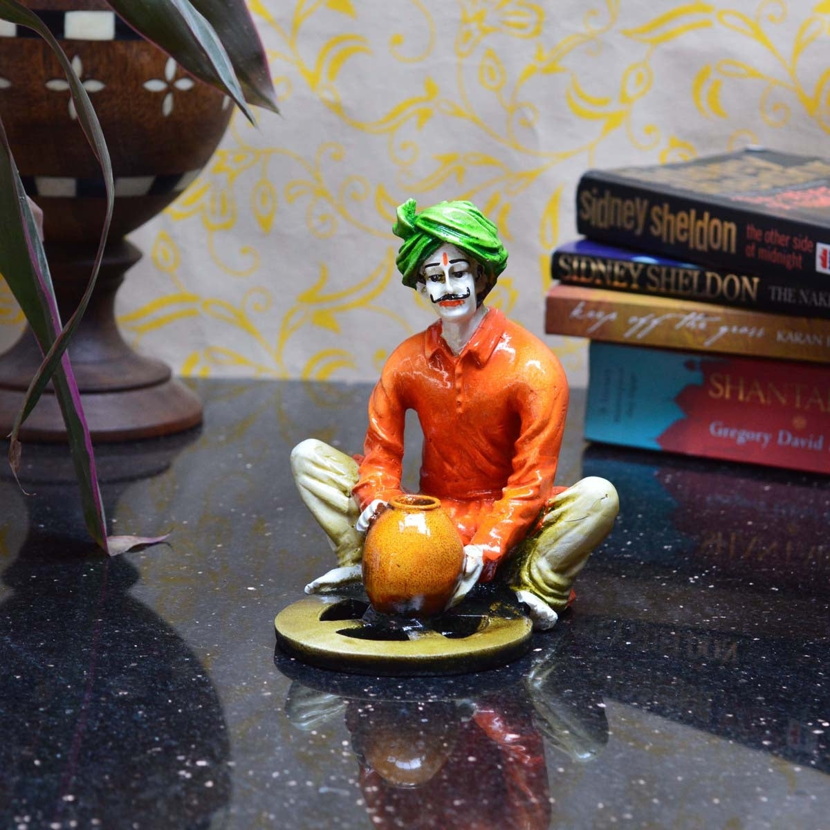 Product Description - Even today, if you travel to the interiors of our great nation, you will find artisans and craftspeople, practicing their skills and producing some of the most incredible pieces, including pots and statues. We bring to you a range of incredible décor pieces made by craftspeople similar to the ones you might encounter on your travels and this particular one is a craftsman himself! This polyresin orange & green Rajasthani Craftsman Statue Making Pot Handcrafted Decorative figurine is a man creating pottery with his traditional wheel. Gift this to your friends and family and make them recall you every time they have a glance at this human figurine as it is exquisitely designed and intricately crafted. You can find many more idols & figurines in different types on our online portal in various colors that suit your home or office interior.