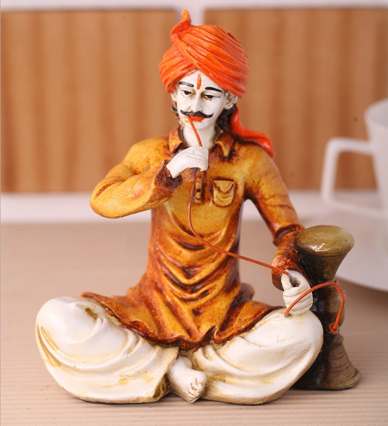 Product Description - Even today, if you go to the villages, you will get to see the elders of the village, sprawled on a cot or sitting under the tree, relaxing and puffing away at their hookah! When you want to bring a little bit of the village charm into your home and interiors, choose to buy this handcrafted yellow, orange & brown Rajasthani Man Using Hookah Handcrafted Decorative figurine. The facial features and the details on the outfits of the figurine are incredibly detailed and make for a wonderful addition to your home. This figurine also makes for a nice gift for someone who is moving into a new house or could be looking for a little something to cheer up their interiors. Gift this to your friends and family and make them recall you every time they have a glance at this human figurine as it is exquisitely designed and intricately crafted. You can find many more idols & figurines in different types on our online portal in various colors that suit your home or office interior.