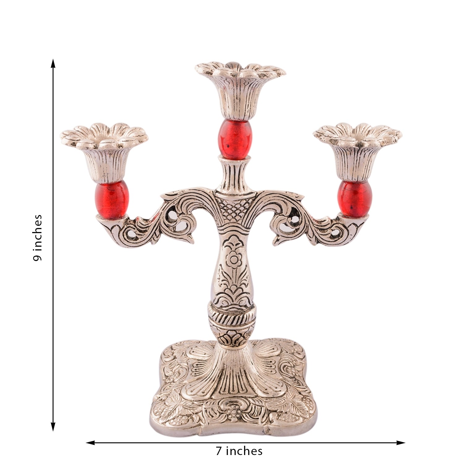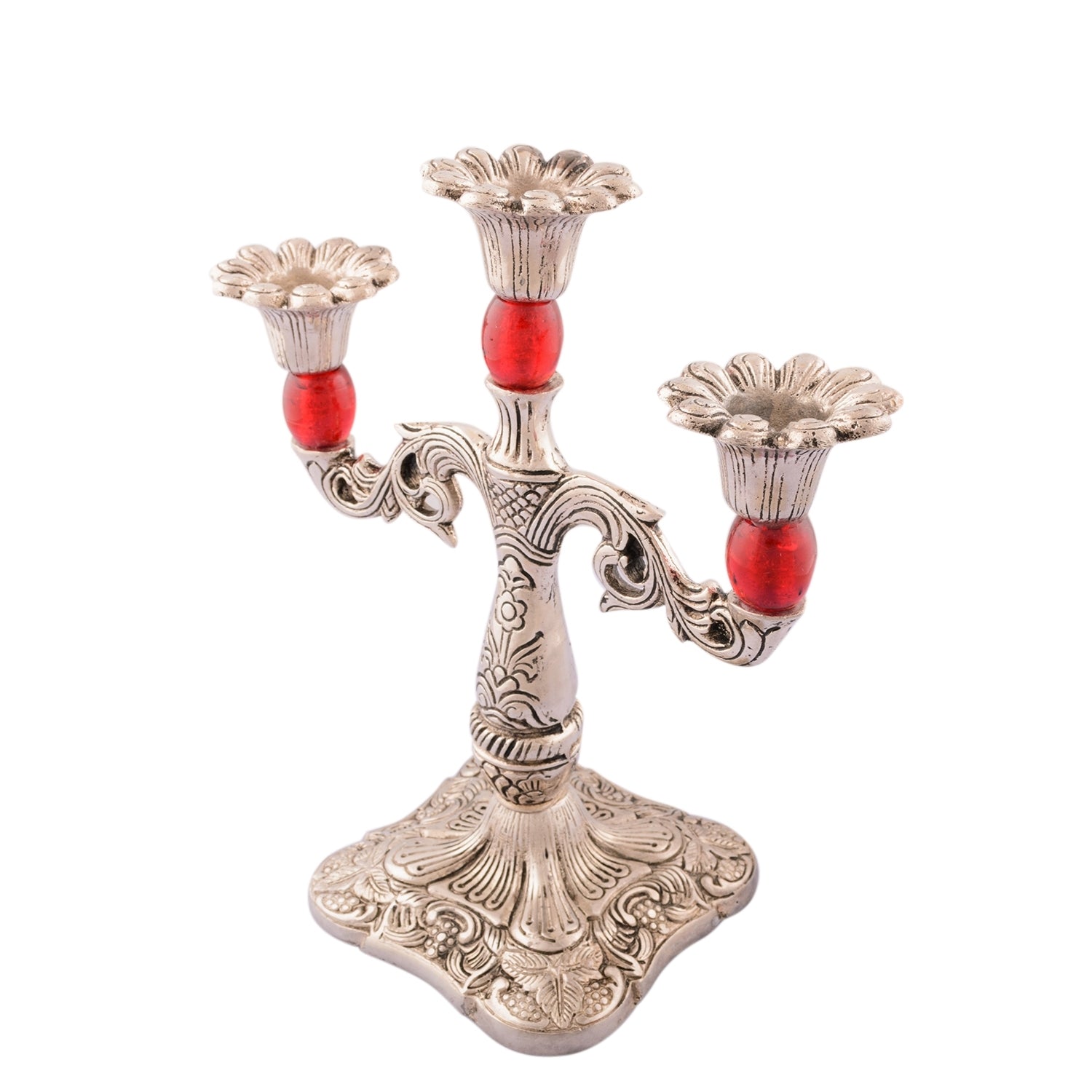 Product Description - Candle stands have been in vogue for ages now and continue to be. And at eCraftIndia, you can discover our white metal silver & red 3-candle stand that makes a great home decor item. Decorate your home with our candle stands which are a great home decor item as well as a great gift. Each stand is diligently handcrafted by our professional artists by utilizing various inherited techniques. This stand serves as a great gift option for your friends and family when it comes to festival gifting. Adorn your home with this candle stand of ours and stand out when it comes to your home interior as it will give a touch of royalty to your home.