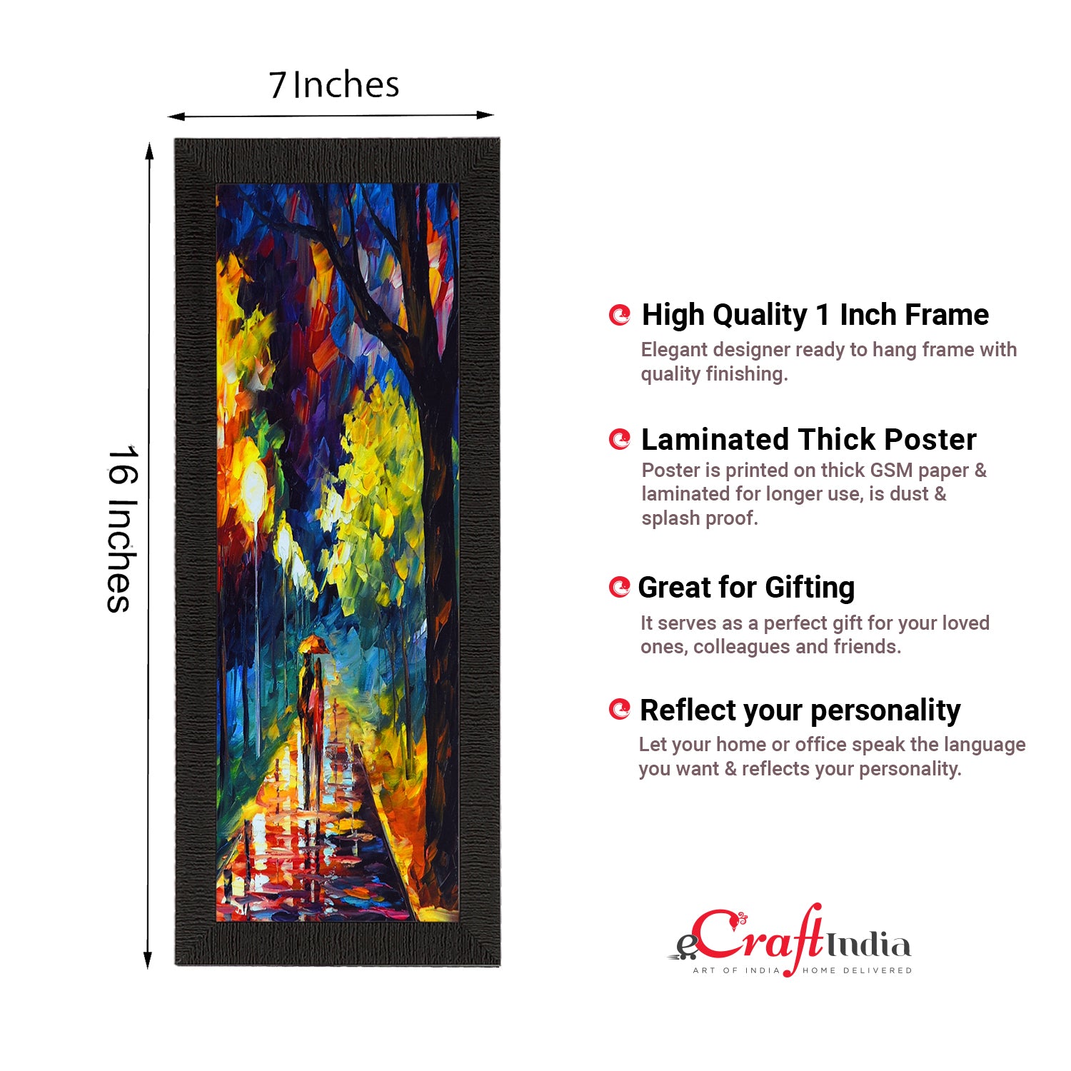 Product Description - Decorate your home & office walls with these artistic design Satin Matt Texture Framed UV Art Painting from eCraftIndia. Each design reflects the artistic qualities and time one has taken to design this painting Exquisitely printed and framed, it is also a perfect gifting option for your colleagues, loved ones and family members. These frames don't include glass so it is very light weight and wet cloth can be used to clean it.