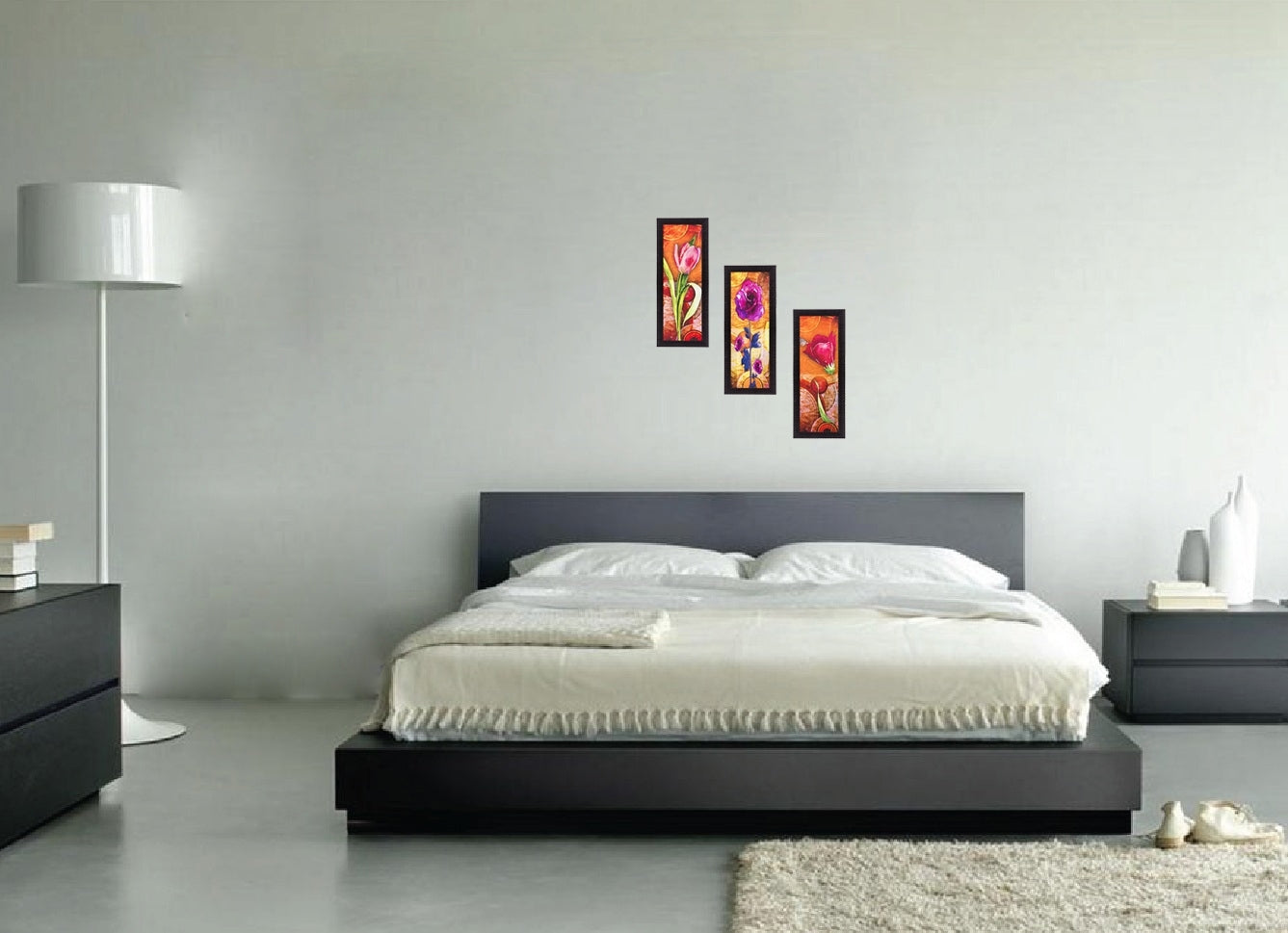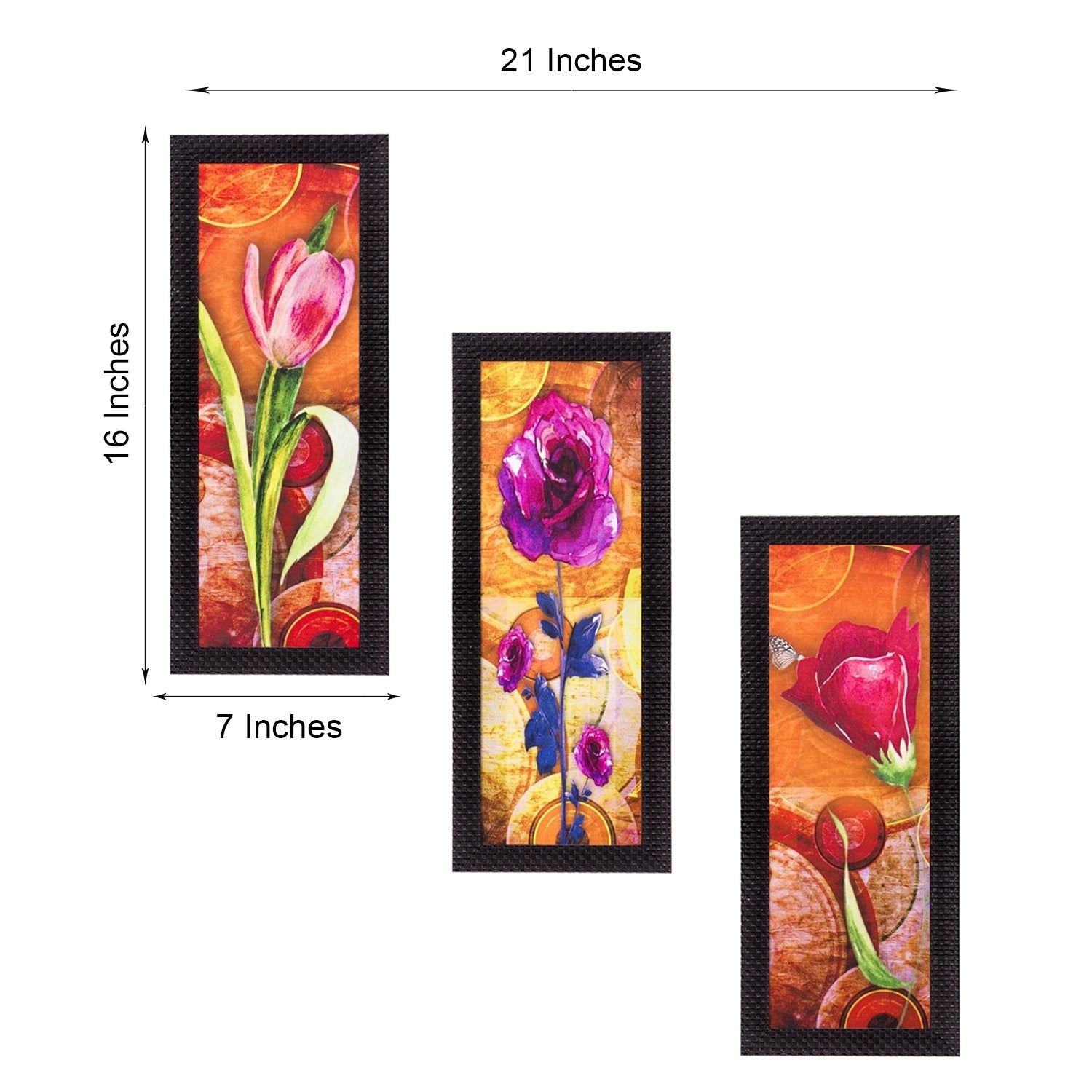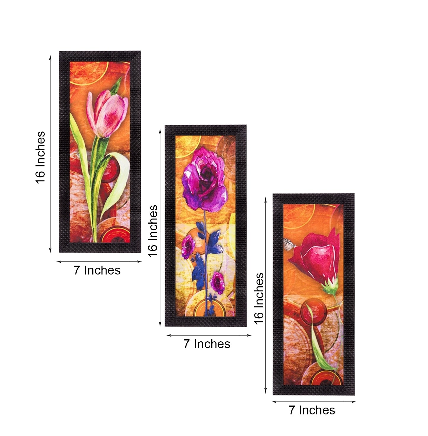 Package Content - Set Of 3 Decorative Floral Lady Satin Matt Texture UV Art Painting