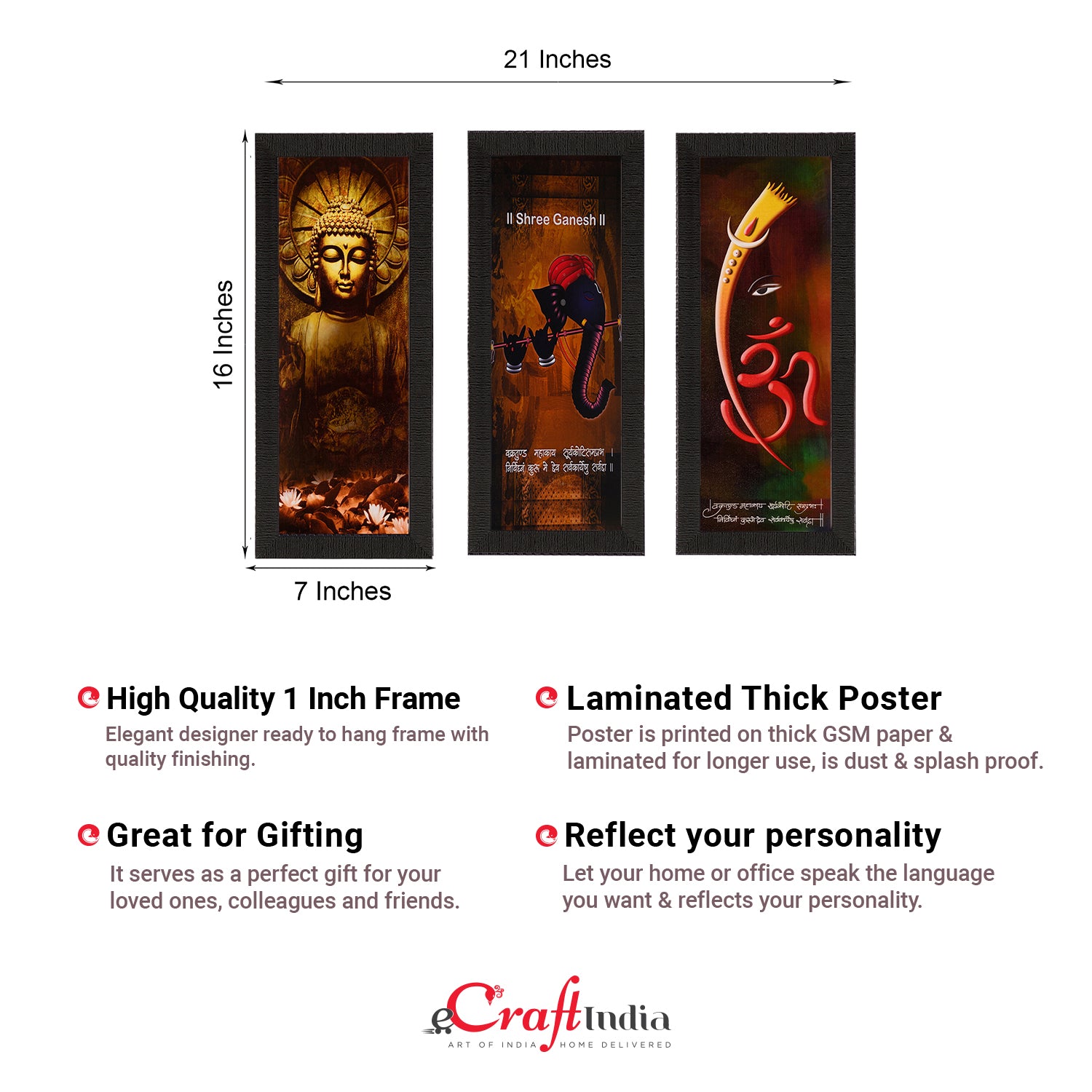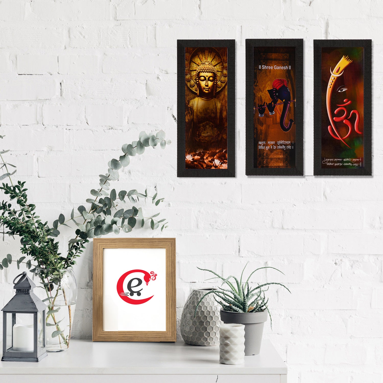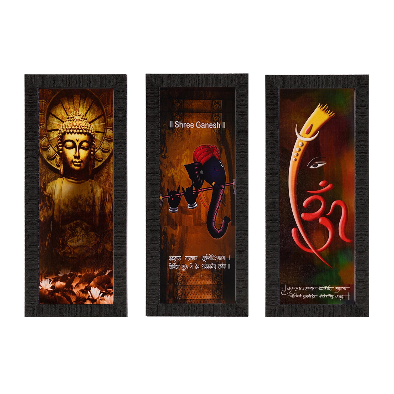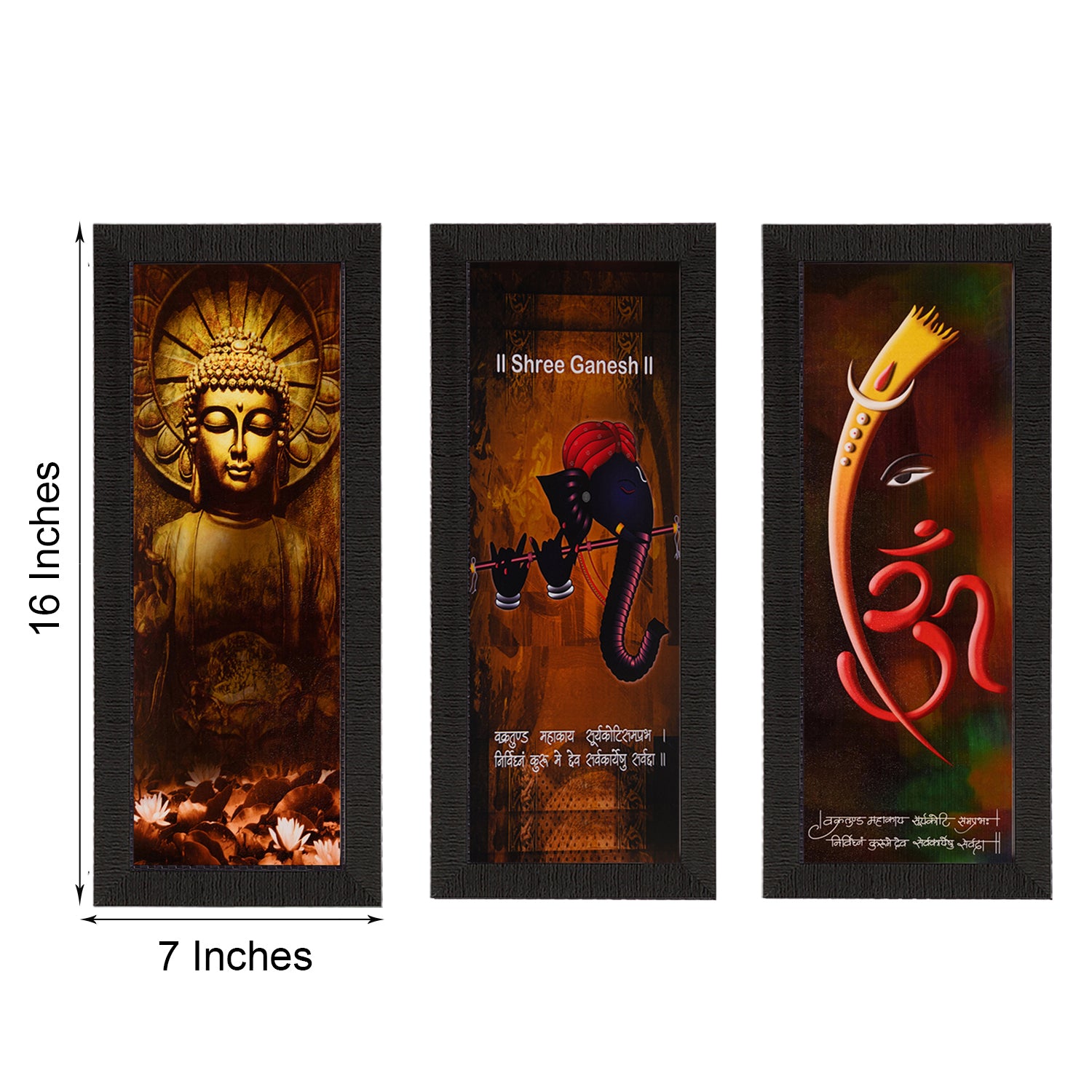 Package Content - Set Of 3 Ganesha & Buddha Satin Matt Texture UV Art Painting