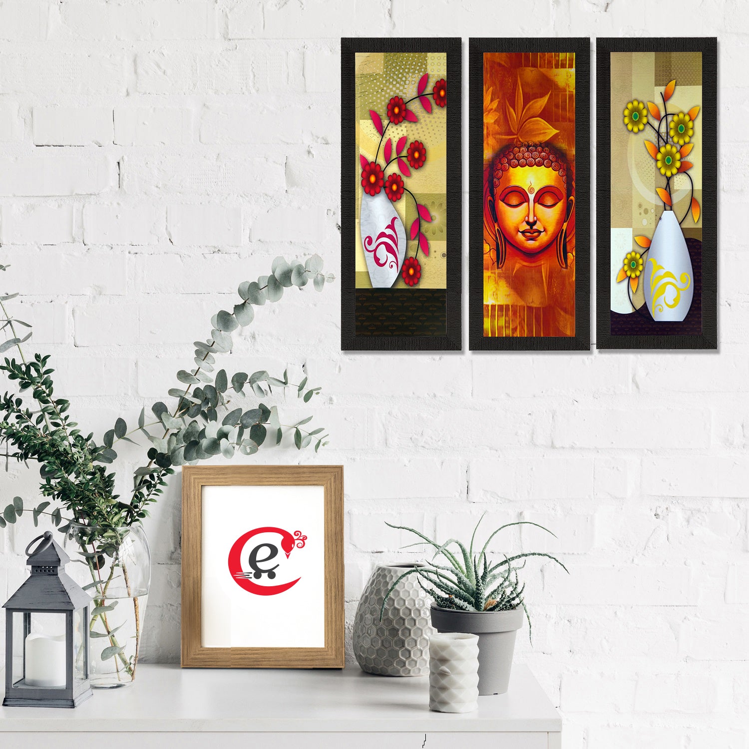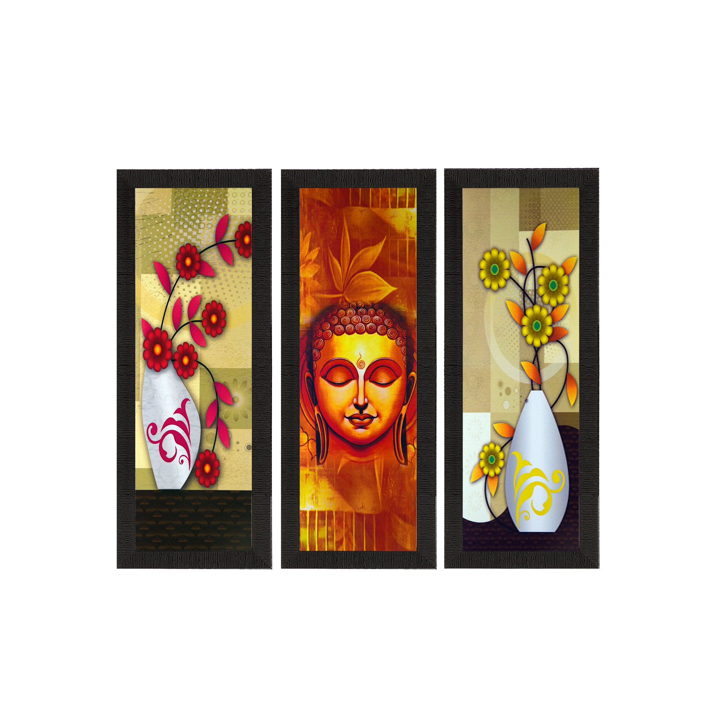 Package Content - Set Of 3 Lord Buddha and Botanical Floral Satin Matt Texture UV Art Painting