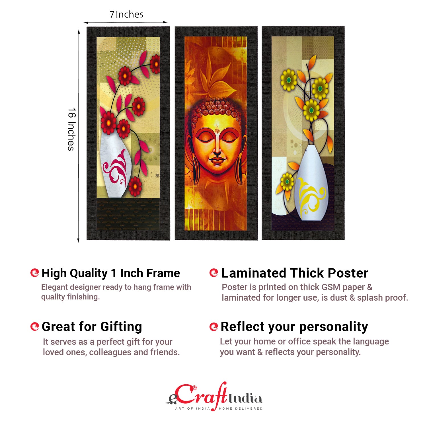 Product Description - Decorate your home & office walls with these artistic design Satin Matt Texture Framed UV Art Painting from eCraftIndia. Each design reflects the artistic qualities and time one has taken to design this painting Exquisitely printed and framed, it is also a perfect gifting option for your colleagues, loved ones and family members. These frames don't include glass so it is very light weight and wet cloth can be used to clean it.