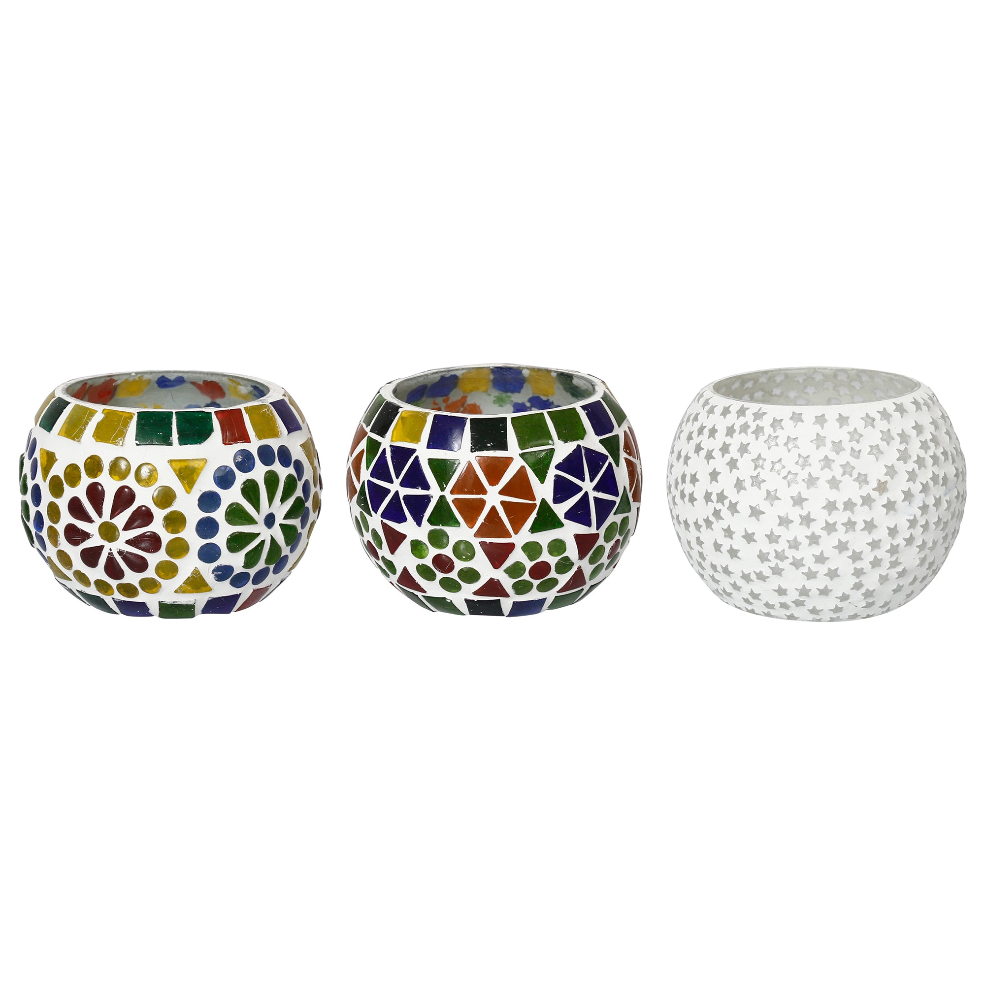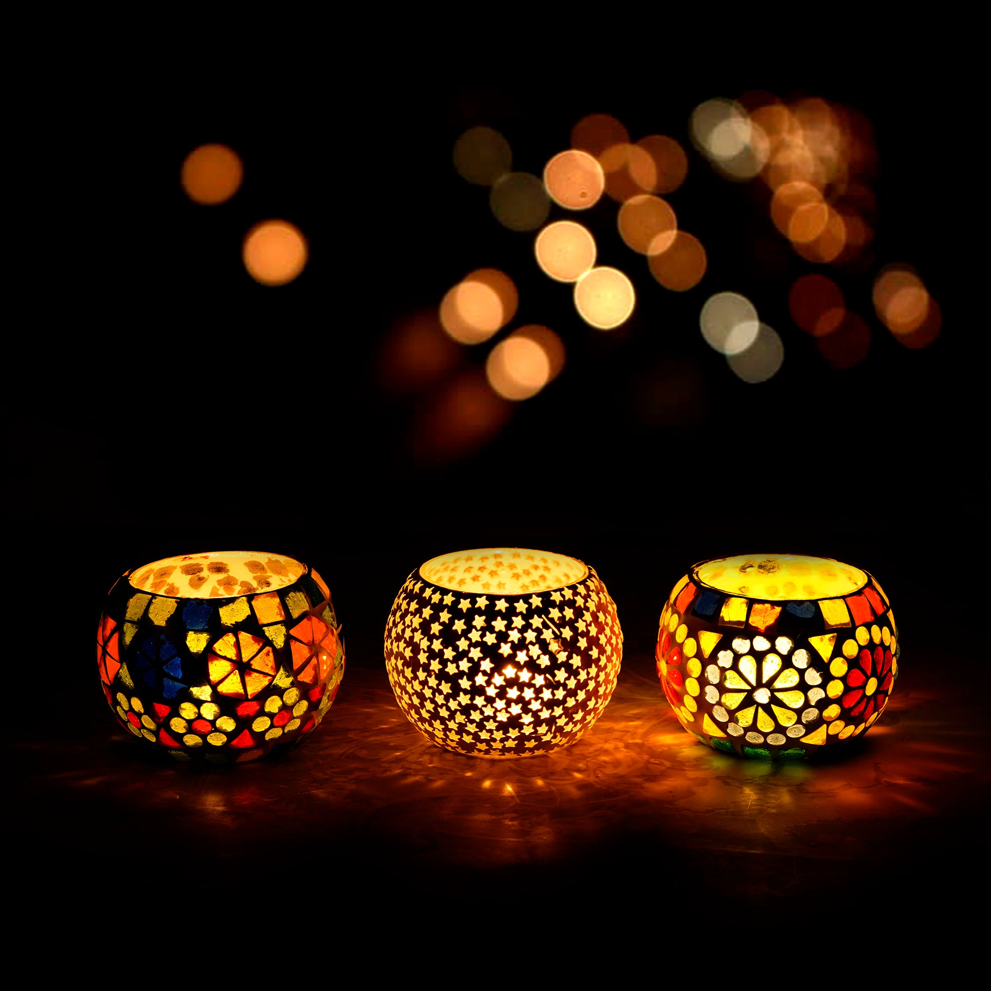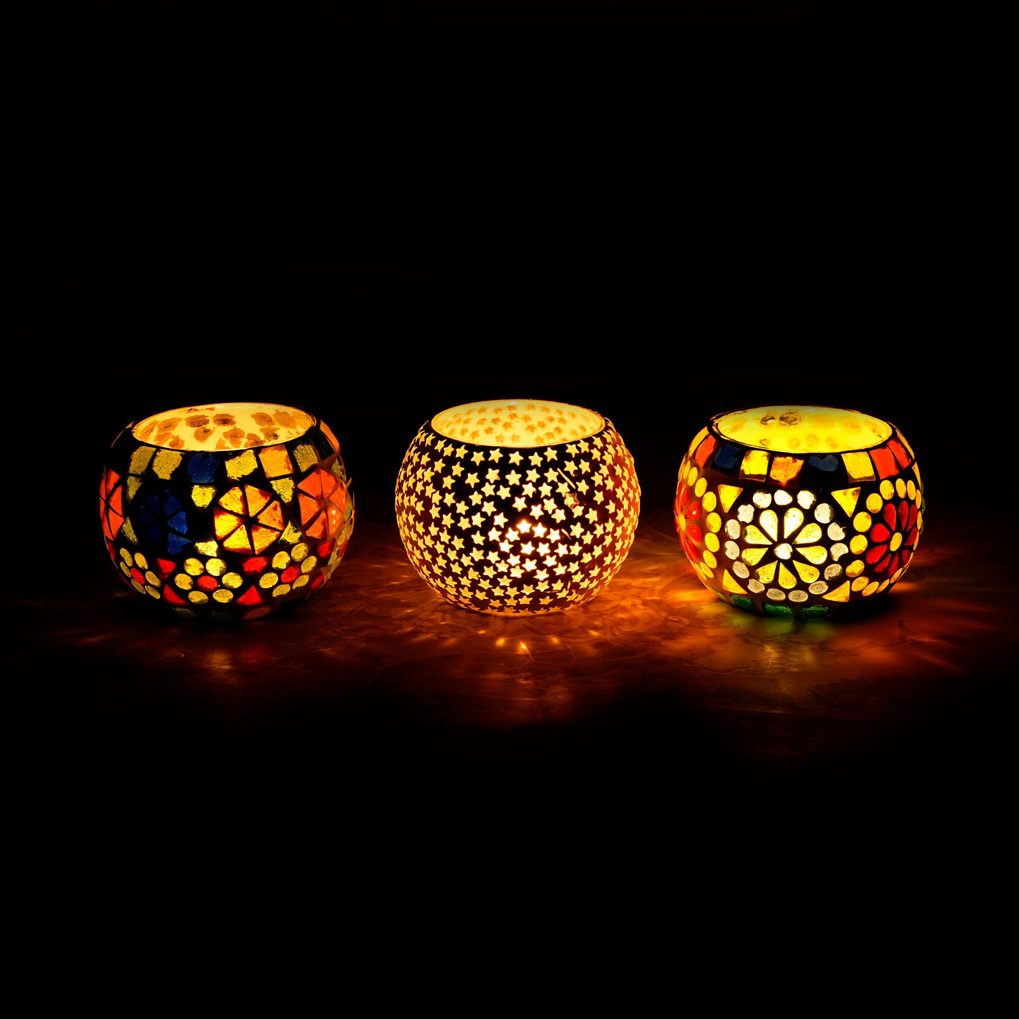 Package Content - One Set of 3 Mosaic Glass Decorative Tea Light Holder/Diya