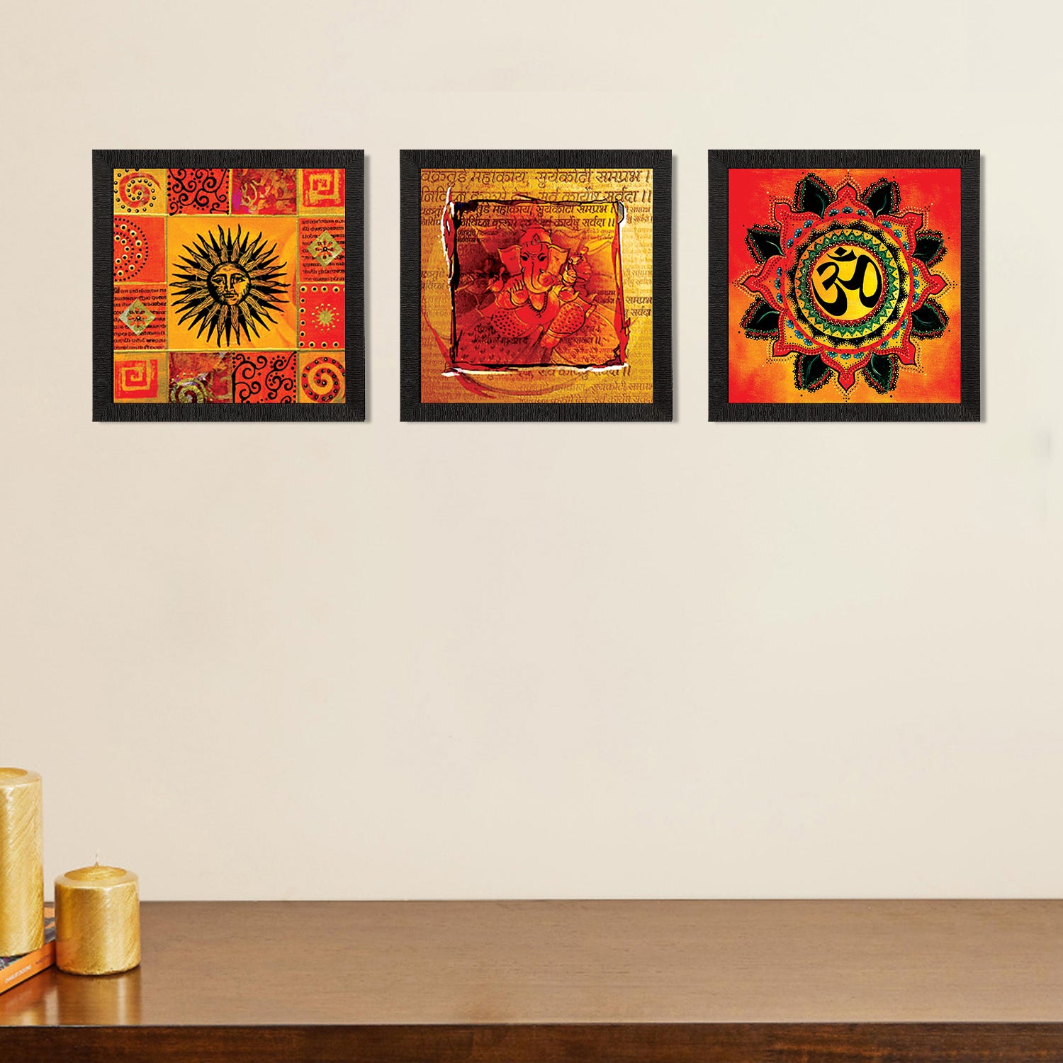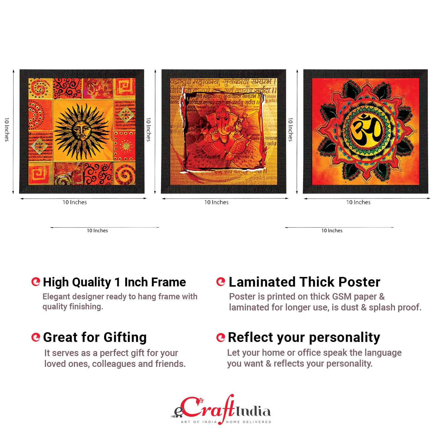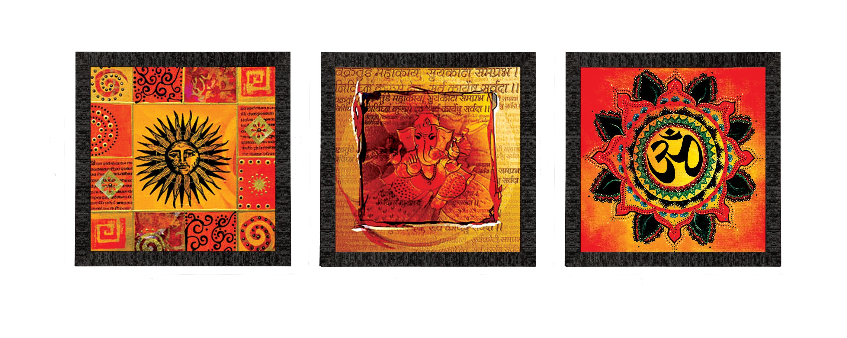 Package Content - Set Of 3 Om and Ganesha Satin Matt Texture UV Art Painting