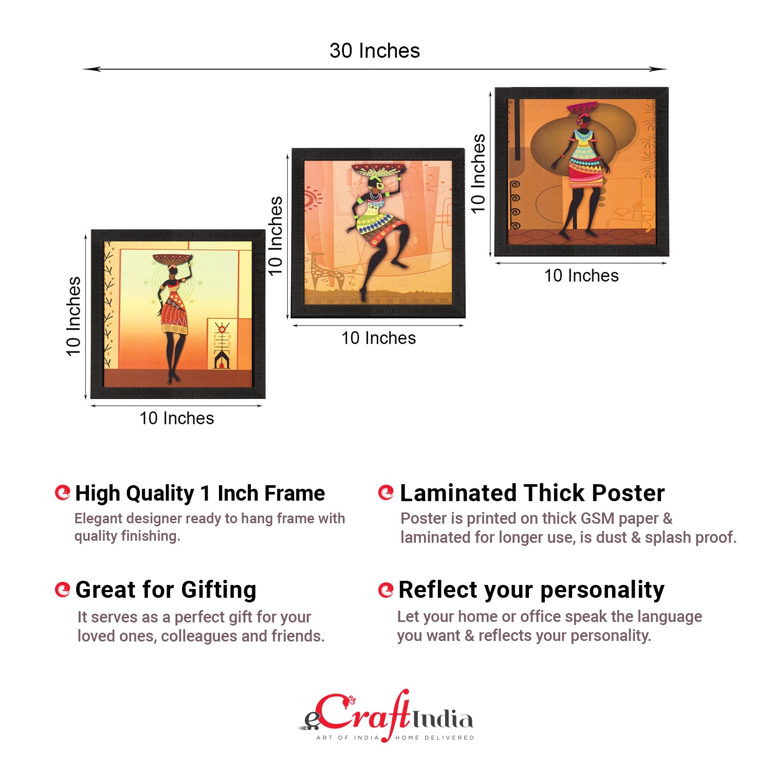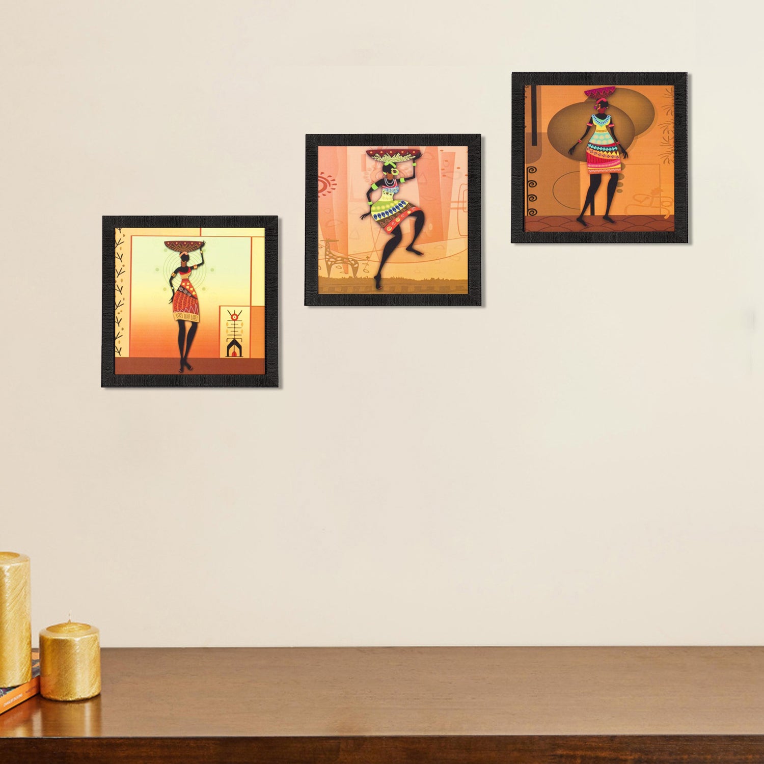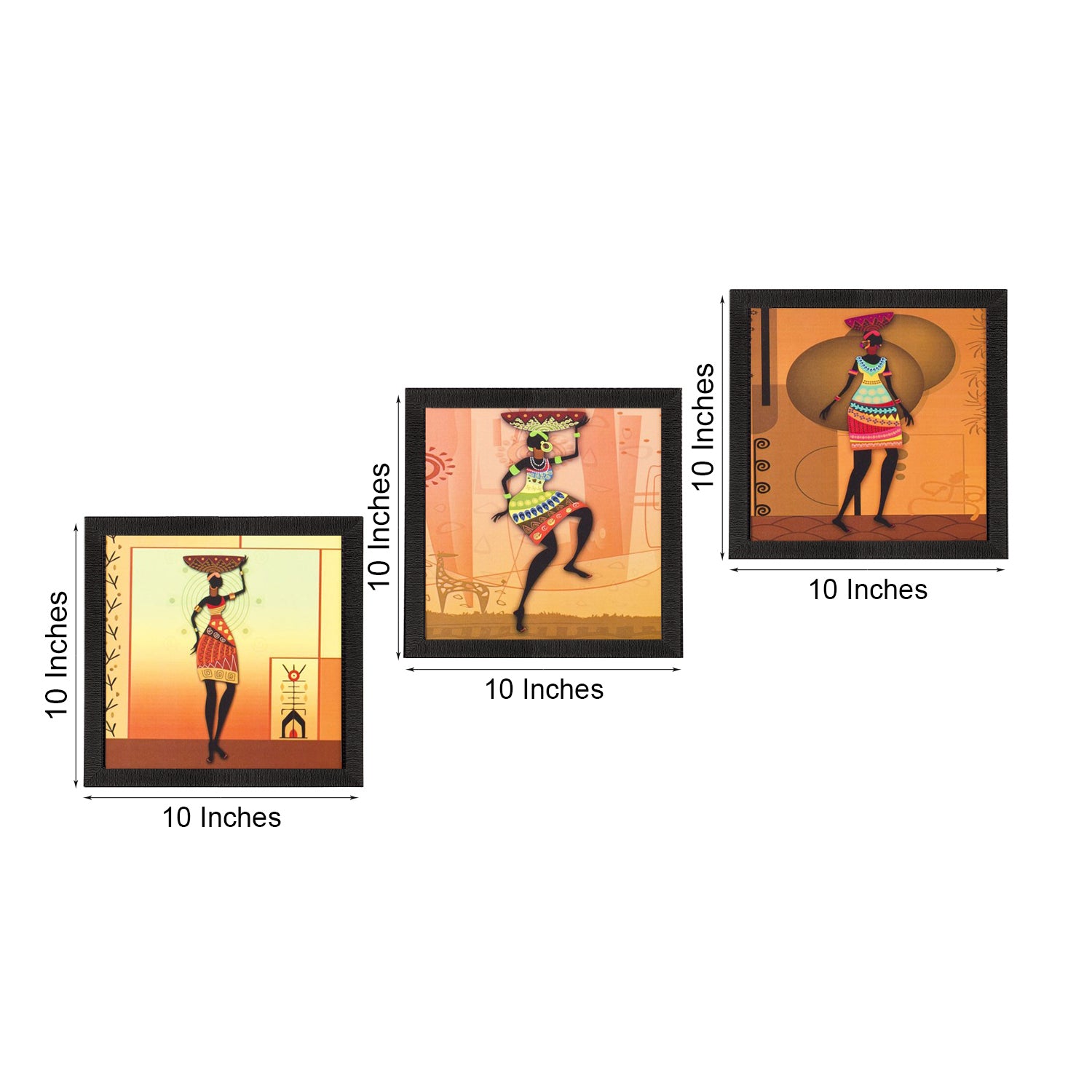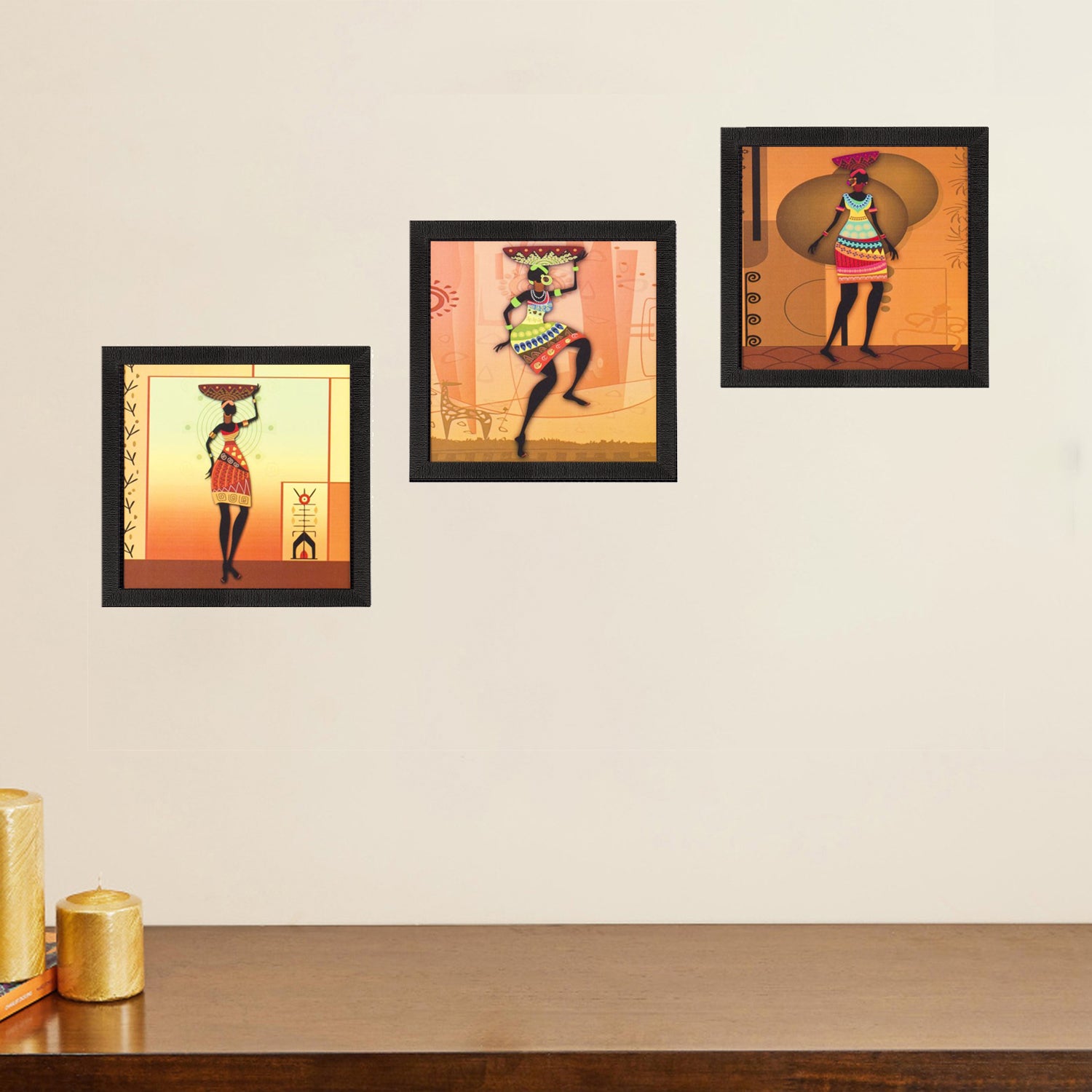 Package Content - Set of 3 Tribal Lady Satin Matt Texture UV Art Painting