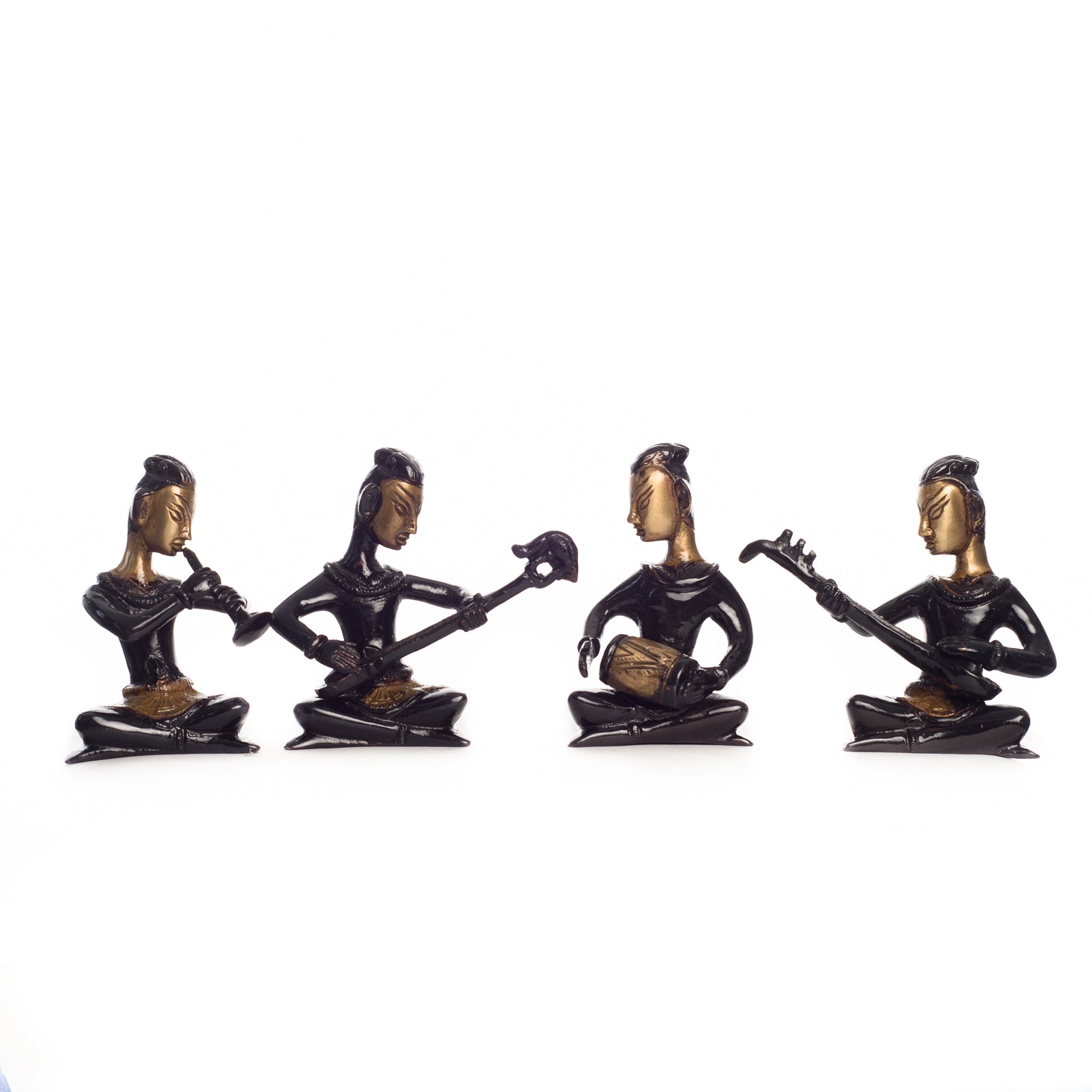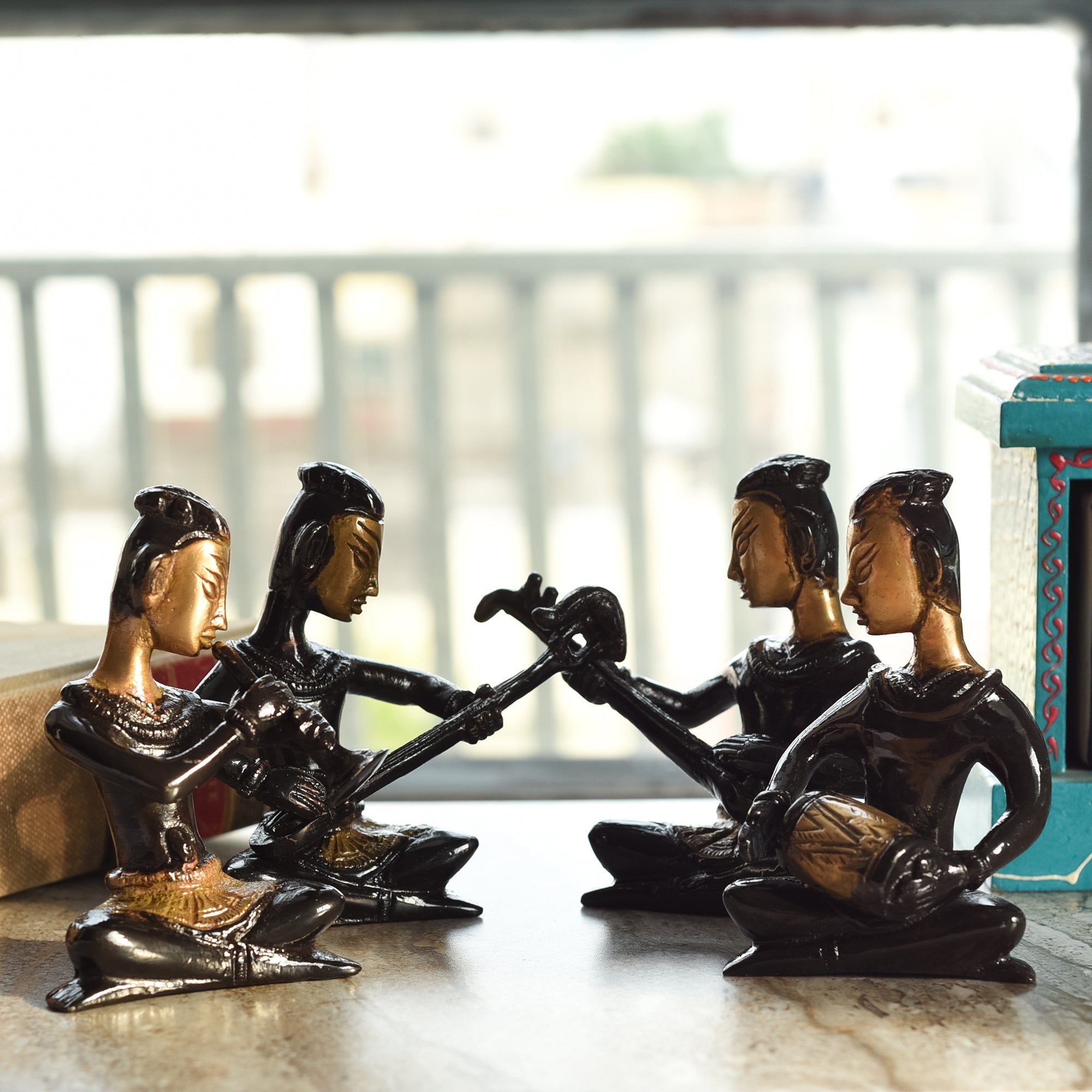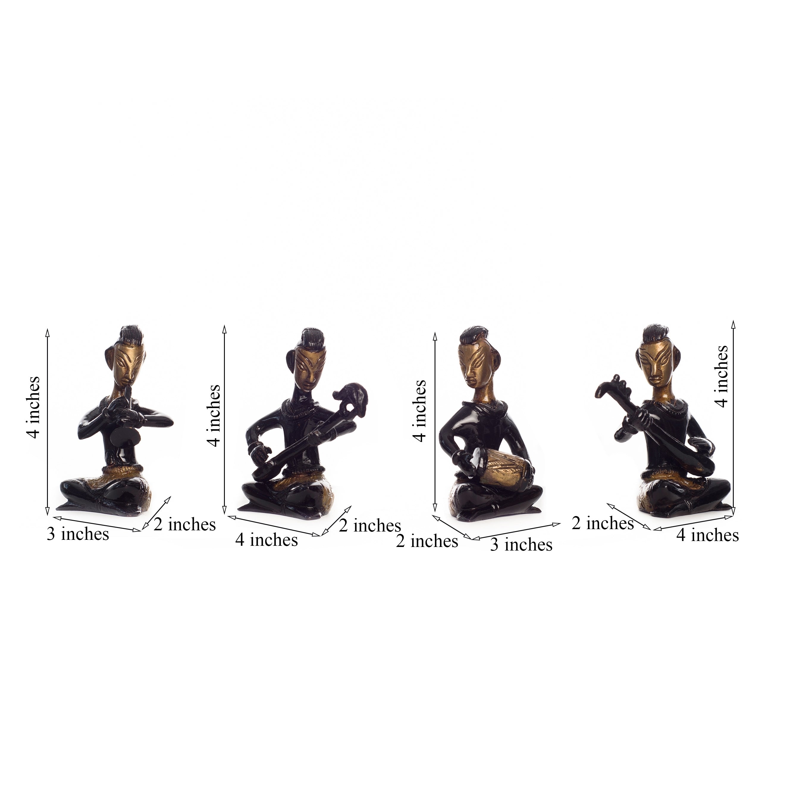 Product Description - Human figurine showpieces add a different element to your home décor. Our Black & golden Set of 4 Brass Musicians Decorative Antique Showpiece is the best kind of human figurine that you can have at your home or your office. These human figurines of ours come in brown color and will match any kind of home décor. This human figurine is handcrafted using various inherited techniques by skilled artisans at the house of eCraftIndia. You can find many such human figurines in many different avatars. Gift this to your friends and family and make them recall you every time they have a glance at this human figurine as it is exquisitely designed and intricately crafted. You can find many more idols & figurines of different types on our online portal in various colors that suit your home or office interior that are a depiction of pure art and craftsmanship.