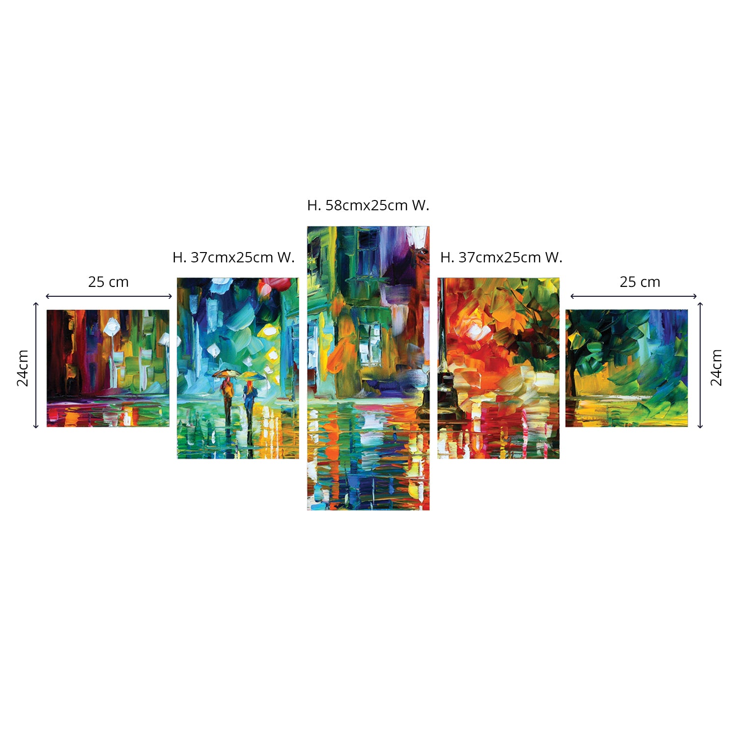 Package Content - Set Of 5 Beauty under Rain Premium Canvas Painting