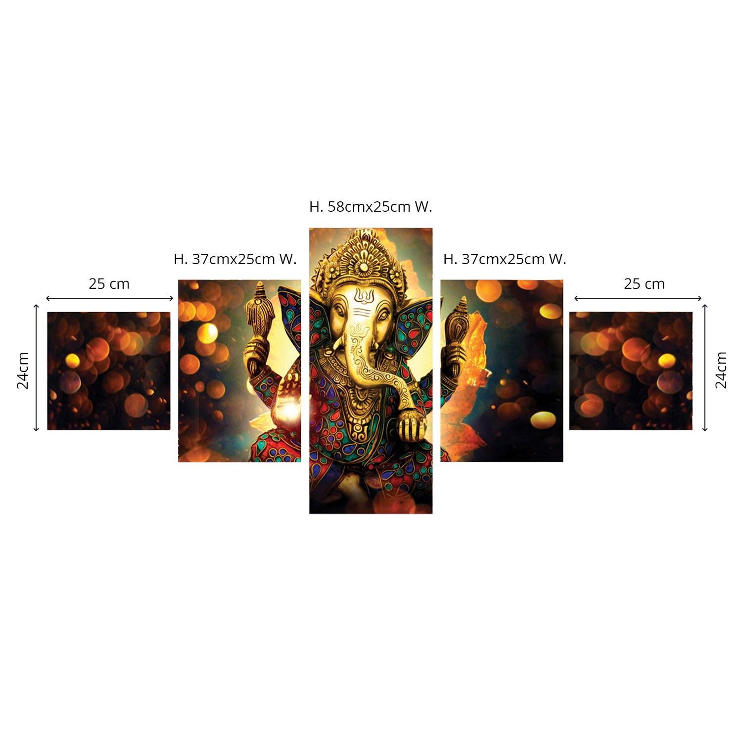 Package Content - Set of 5 Lord Ganesha Premium Canvas Painting