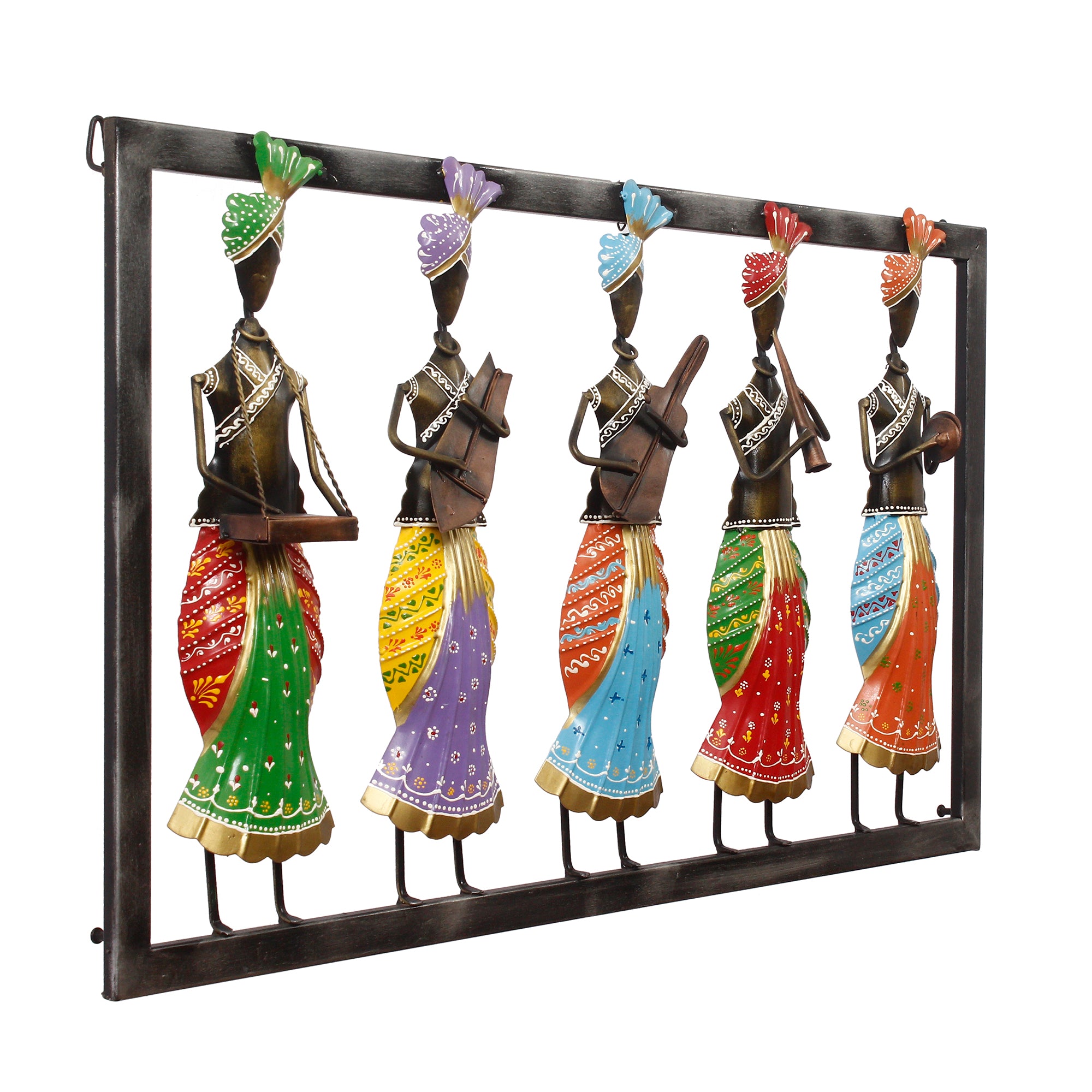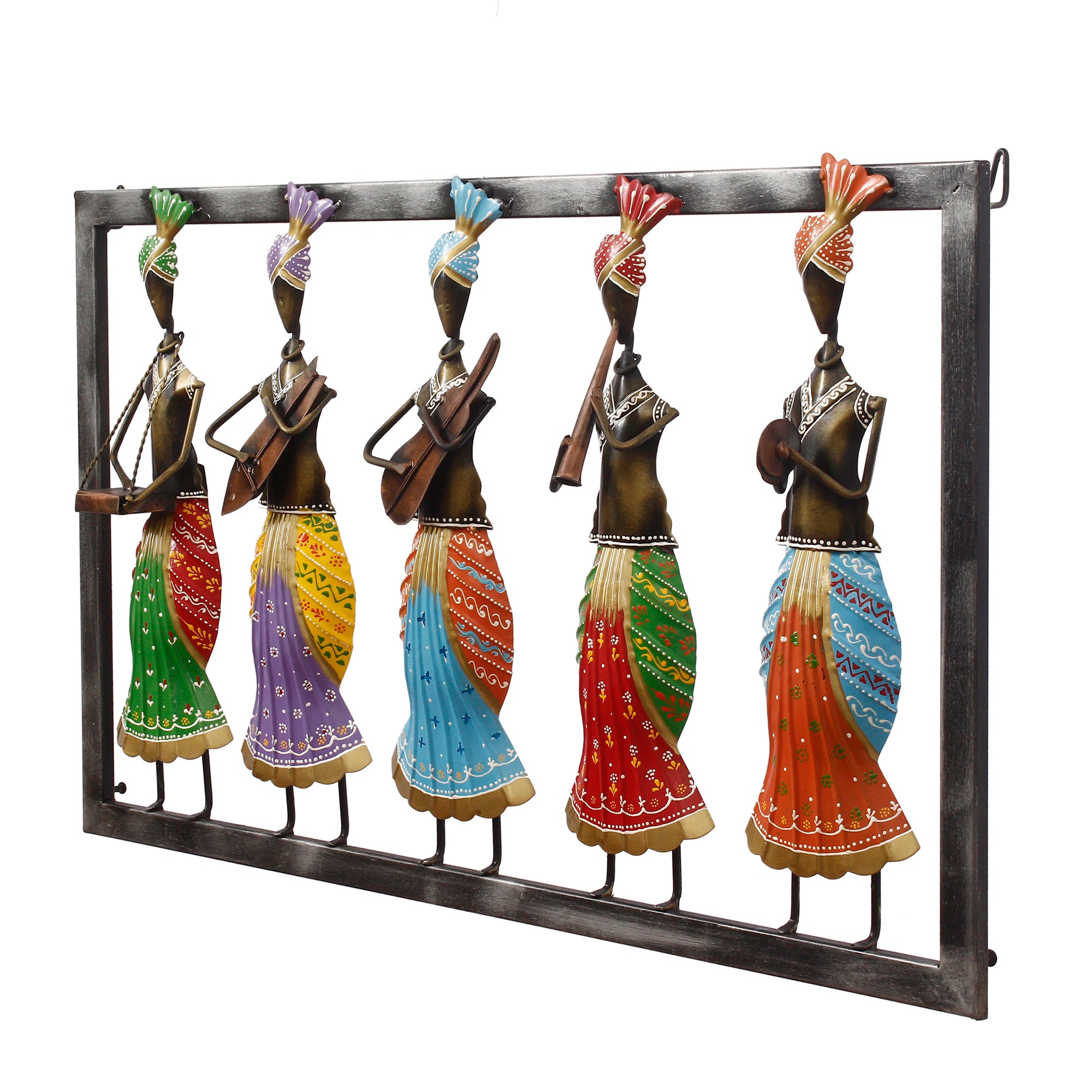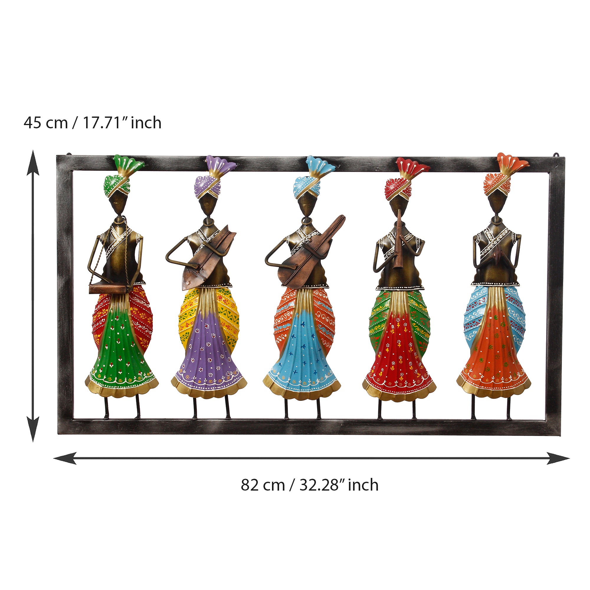 Package Content - One Set of 5 Tribal Women Playing Different Musical Instruments Colorful Decorative Iron Wall Hanging