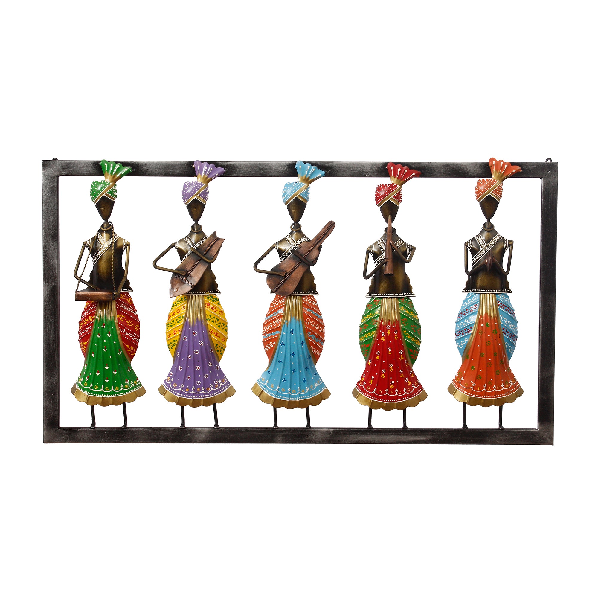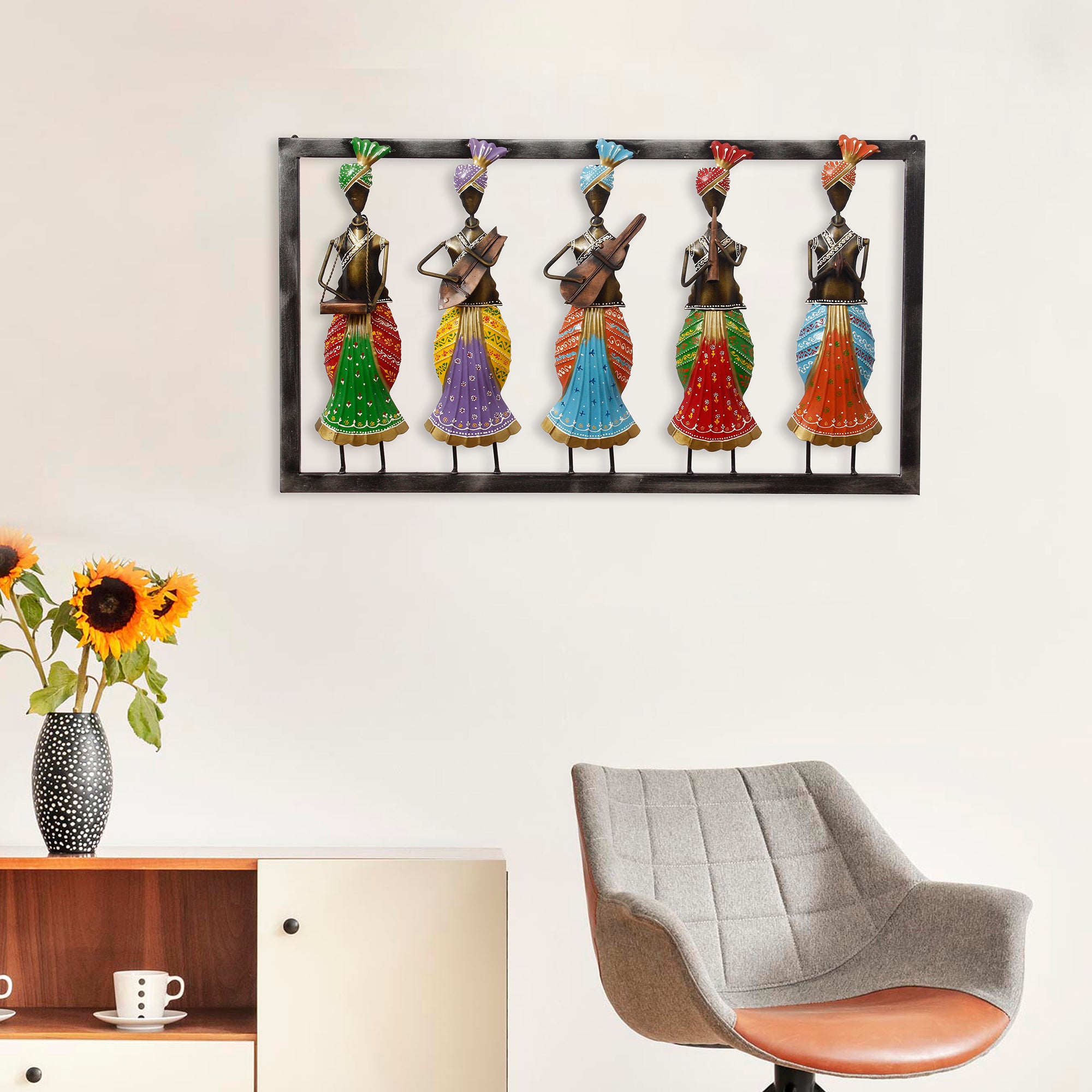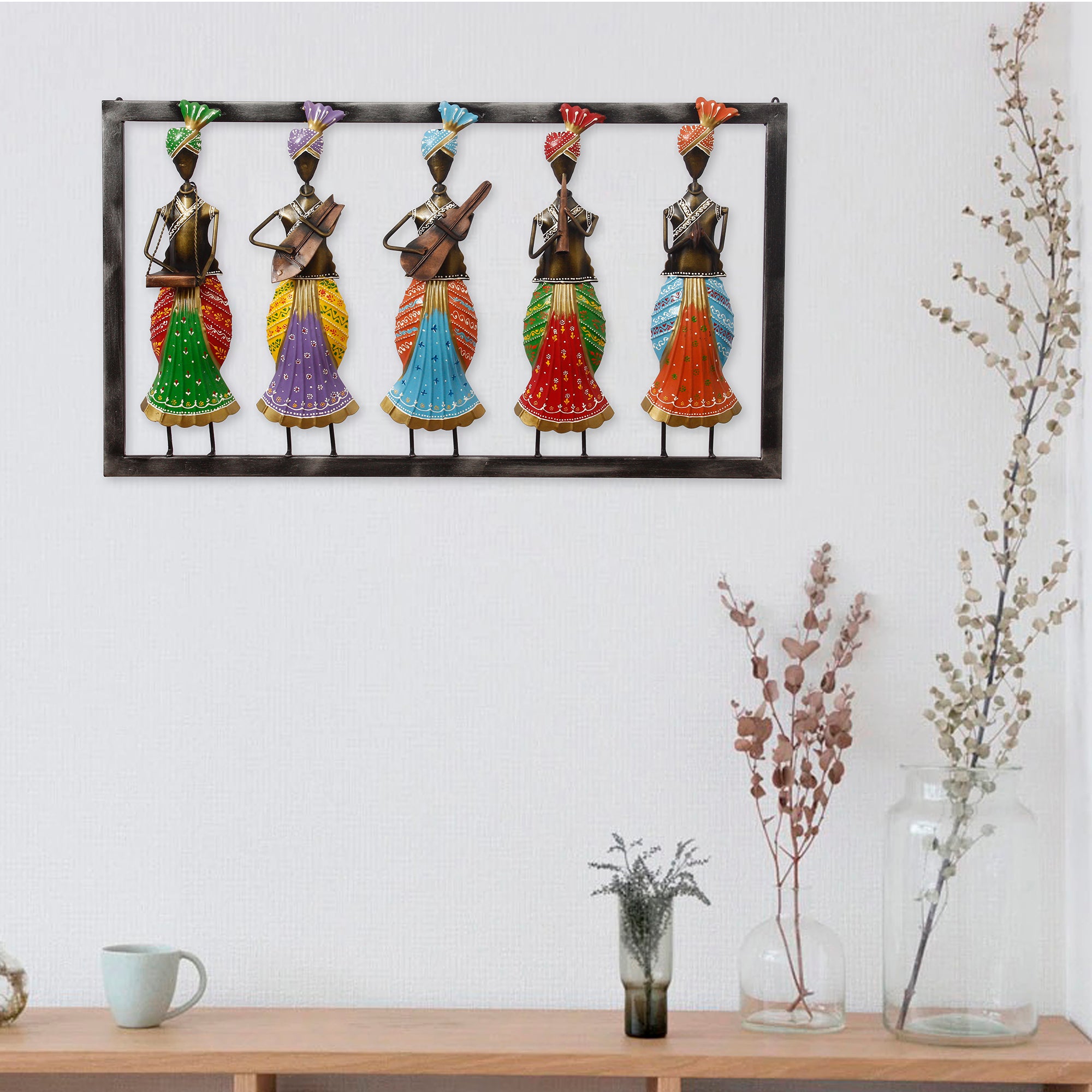 Package Content - One Set of 5 Tribal Women Playing Different Musical Instruments Colorful Decorative Iron Wall Hanging