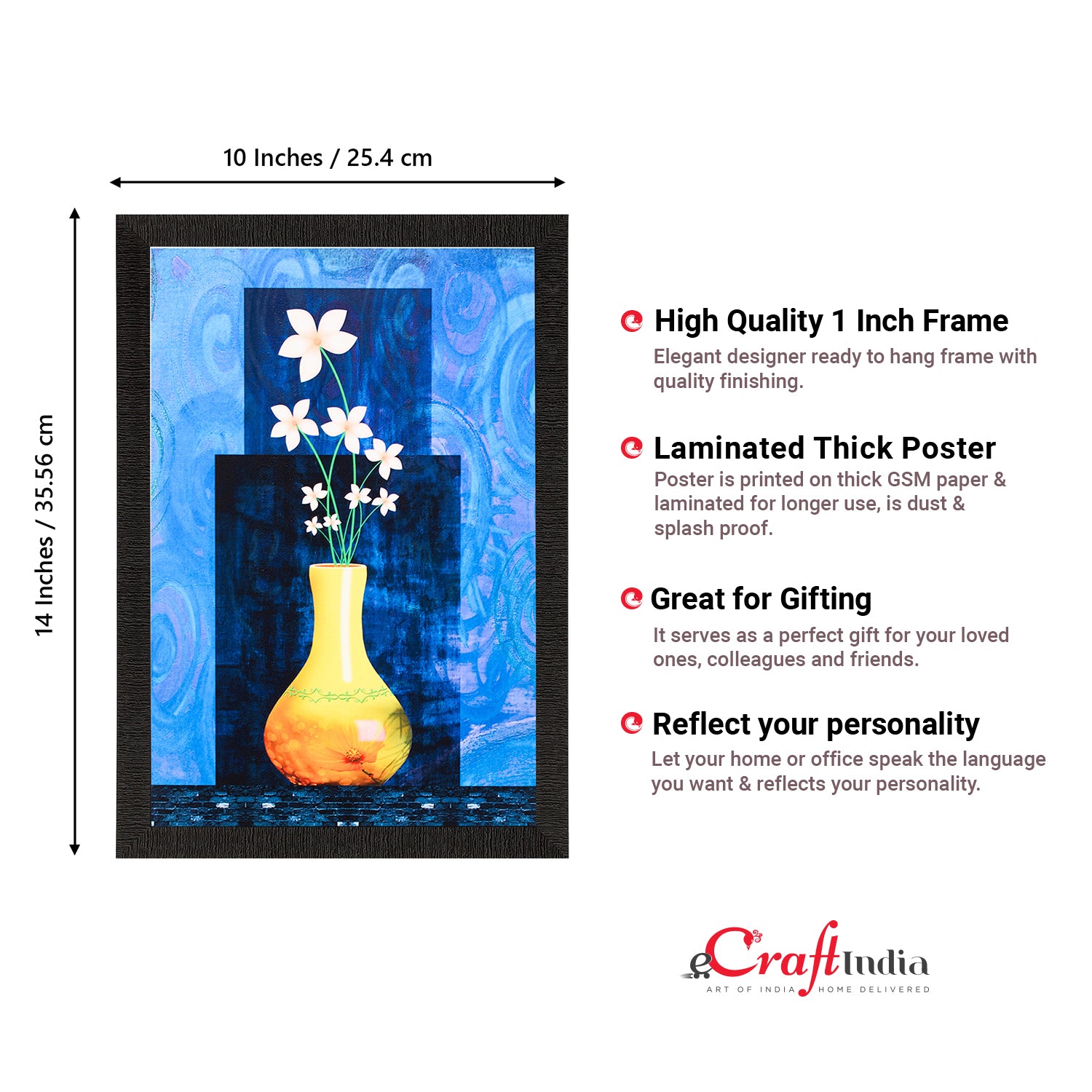 Product Description - Decorate your home & office walls with these artistic design Satin Matt Texture Framed UV Art Painting from eCraftIndia. Each design reflects the artistic qualities and time one has taken to design this painting Exquisitely printed and framed, it is also a perfect gifting option for your colleagues, loved ones and family members. These frames don't include glass so it is very light weight and wet cloth can be used to clean it.