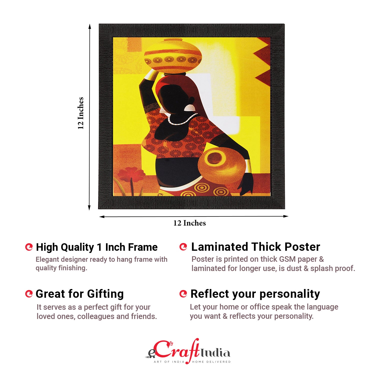 Product Description - Decorate your home & office walls with these artistic design Satin Matt Texture Framed UV Art Painting from eCraftIndia. Each design reflects the artistic qualities and time one has taken to design this painting Exquisitely printed and framed, it is also a perfect gifting option for your colleagues, loved ones and family members. These frames don't include glass so it is very light weight and wet cloth can be used to clean it.