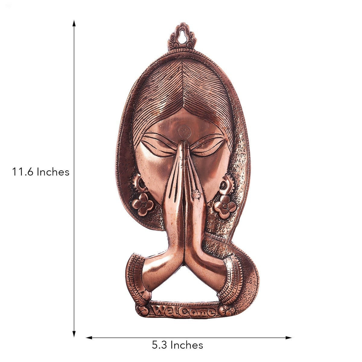 Product Description - Decorative wall pieces enhance your home space very much as they add a different element altogether. Our Namaste Welcome Lady Metal Wall Hanging that comes in brown color reflects the artistic brilliance and adds a different vibe to your room. This wall hanging stands as a great gifting option when it comes to religious events for your friends and family. This handicraft has been made by skilled artisans from the house of eCraftIndia using various traditional techniques. You can find many such wall hangings on our online portal that not only make a good wall decor item but also a gift option for various celebrations.