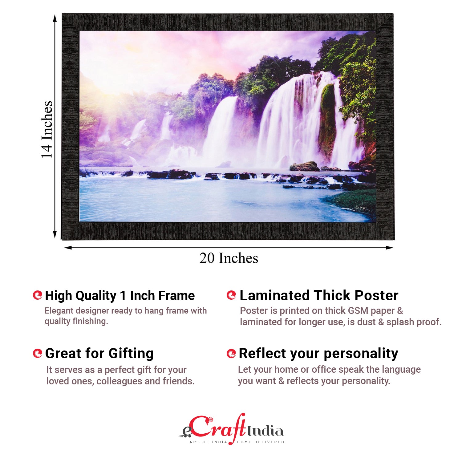Product Description - Decorate your home & office walls with these artistic design Satin Matt Texture Framed UV Art Painting from eCraftIndia. Each design reflects the artistic qualities and time one has taken to design this painting Exquisitely printed and framed, it is also a perfect gifting option for your colleagues, loved ones and family members. These frames don't include glass so it is very light weight and wet cloth can be used to clean it.