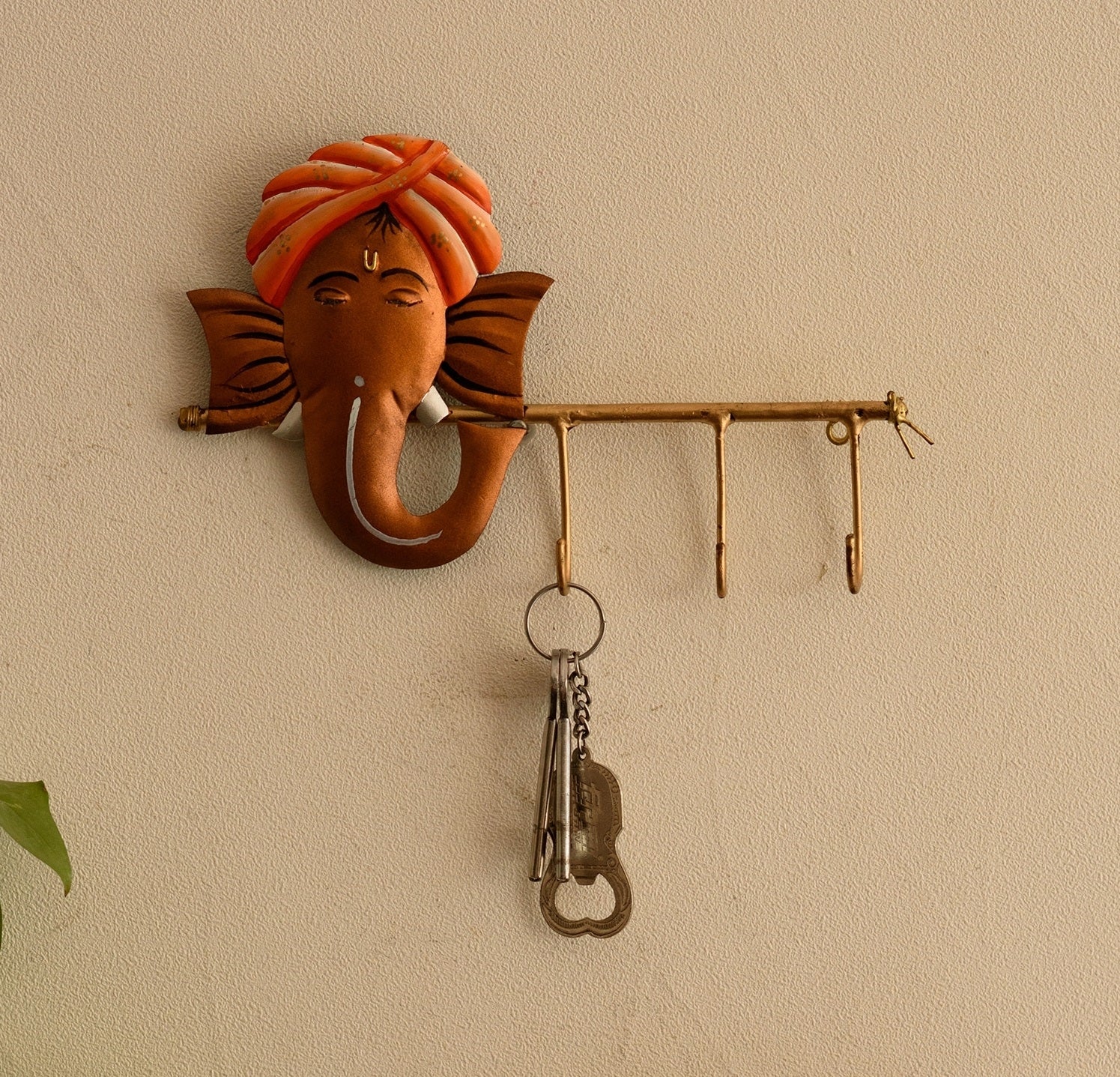Product Description - Make your home look beautiful by hanging your keys on this Wrought Iron Lord Ganesha Key Holder. The key knobs have been carefully designed to hold your keys. This key holder can be hung at any place in your house to keep keys secured and can also be used as a wall decoration piece. It serves as a great gift, especially around religious celebrations and festivities. Each Key Holder is diligently handcrafted by skilled artisans from the house of eCraftIndia using various traditional techniques.