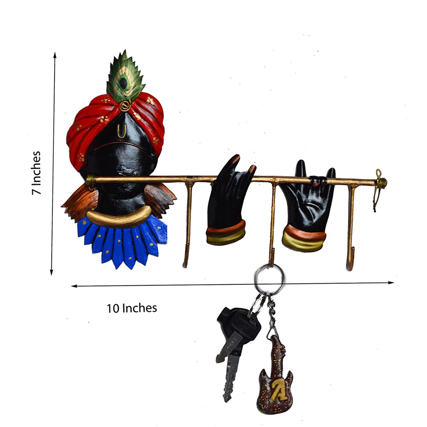 Product Description - Key holder always held a very important part in everyone's home and are also available in various forms. Our "Wrought Iron Lord Krishna Key Holder" that comes in red, blue, green and black color is the best for you if you have a traditional home décor. The key knobs have been carefully designed to hold your keys. These key holders stand as a great gifting option for your family and friends for various events. You can find many such key holders in different types on our online portal. These key holders are handcrafted using various inherited techniques by the artisans at the house of eCraftIndia.