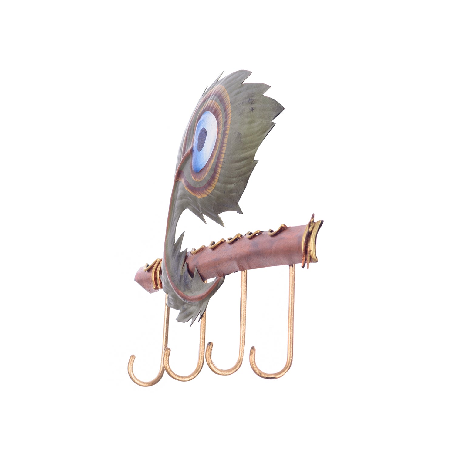 Product Description - Are you a Lord Krishna believer? Or wish to have traditional things as your home décor? Our Green & brown Wrought iron bansuri with mor pankh Key Holder with 4 Hooks is the best for you to have in your home. It is necessary to have a good kind of key holder to hang your keys as this home décor item should be of good long-lasting usage as well as should embrace, and enhance your home interior. This key holder comes in Green & brown colors. This is completely handcrafted using various inherited techniques by the artisans at the house of eCraftIndia.