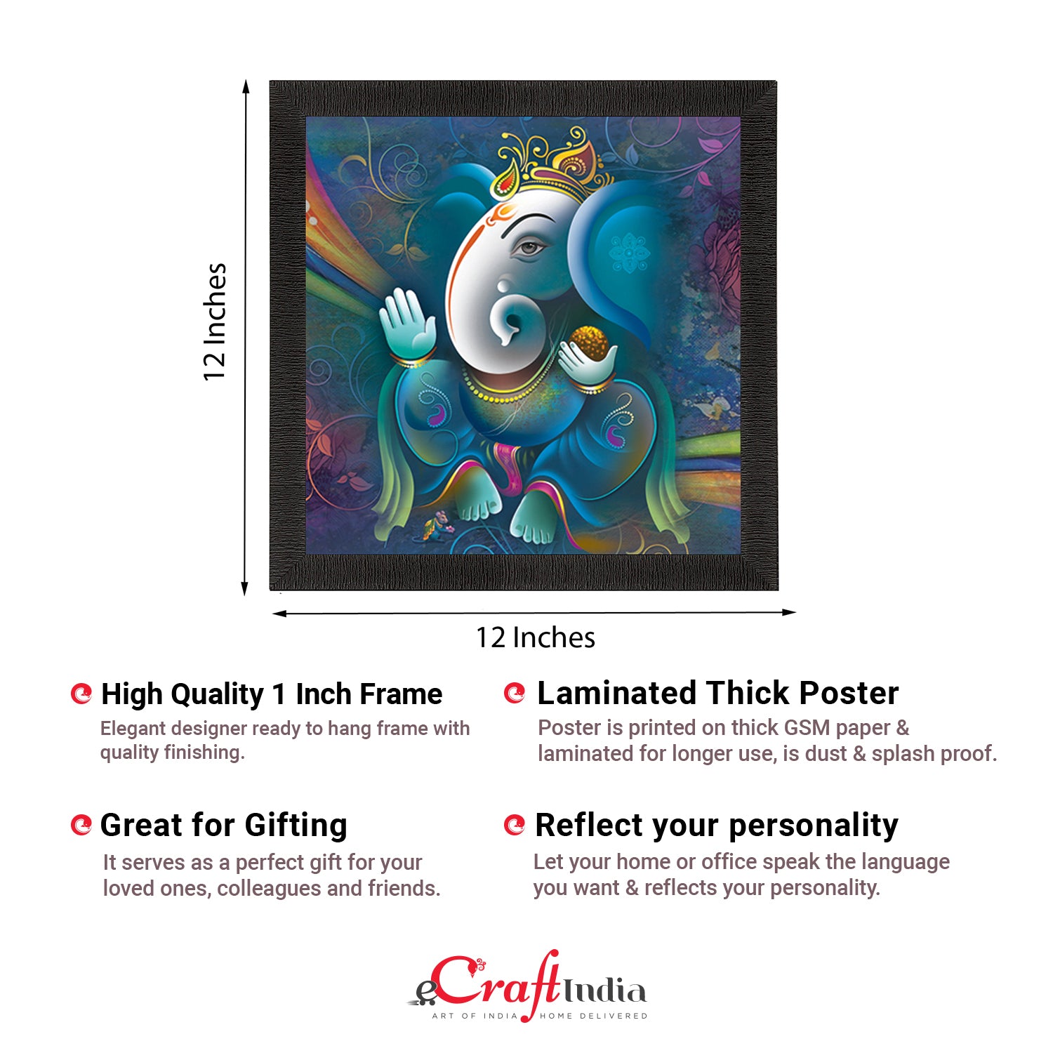 Product Description - Decorate your home & office walls with these artistic design Satin Matt Texture Framed UV Art Painting from eCraftIndia. Each design reflects the artistic qualities and time one has taken to design this painting Exquisitely printed and framed, it is also a perfect gifting option for your colleagues, loved ones and family members. These frames don't include glass so it is very light weight and wet cloth can be used to clean it.