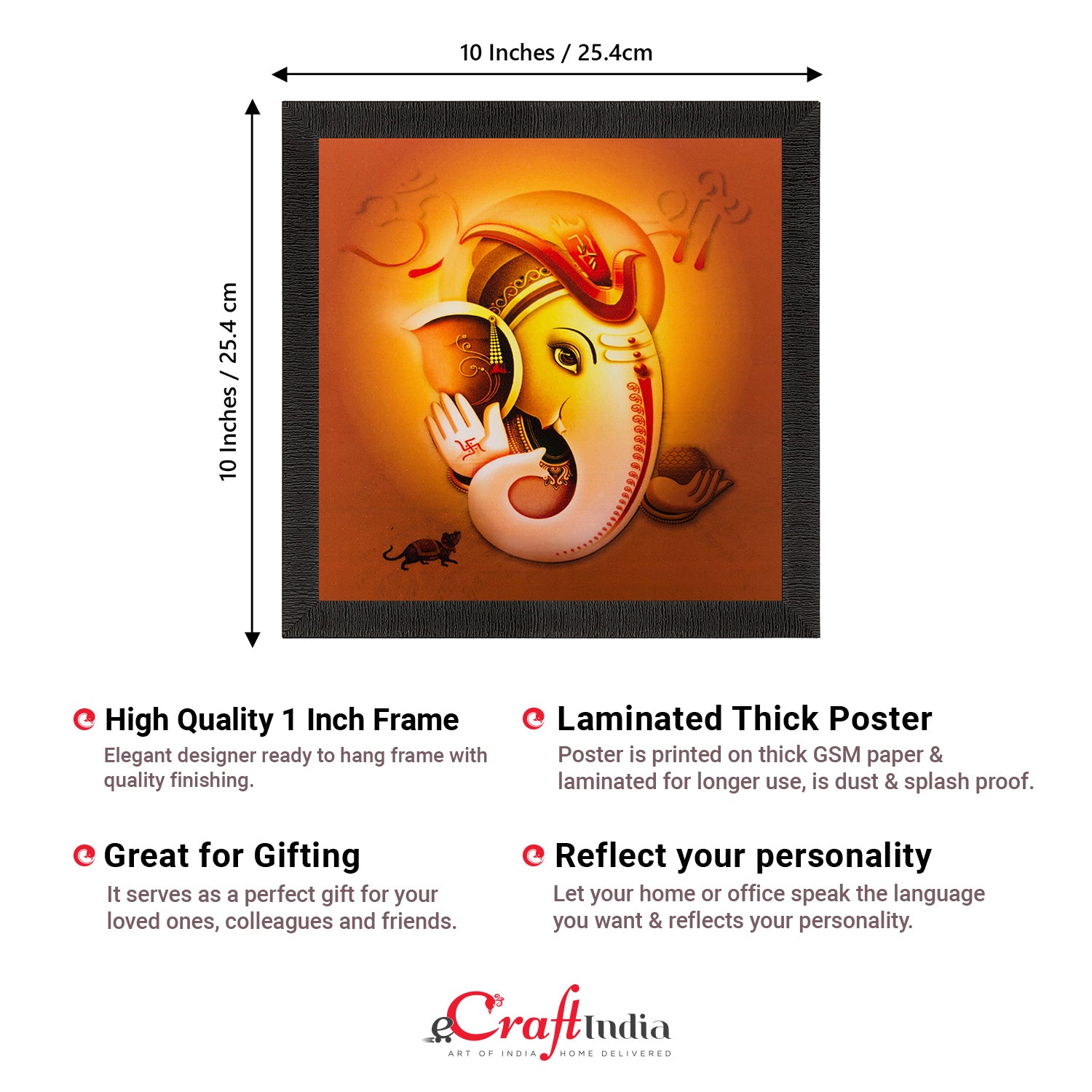 Product Description - Decorate your home & office walls with these artistic design Satin Matt Texture Framed UV Art Painting from eCraftIndia. Each design reflects the artistic qualities and time one has taken to design this painting Exquisitely printed and framed, it is also a perfect gifting option for your colleagues, loved ones and family members. These frames don't include glass so it is very light weight and wet cloth can be used to clean it.