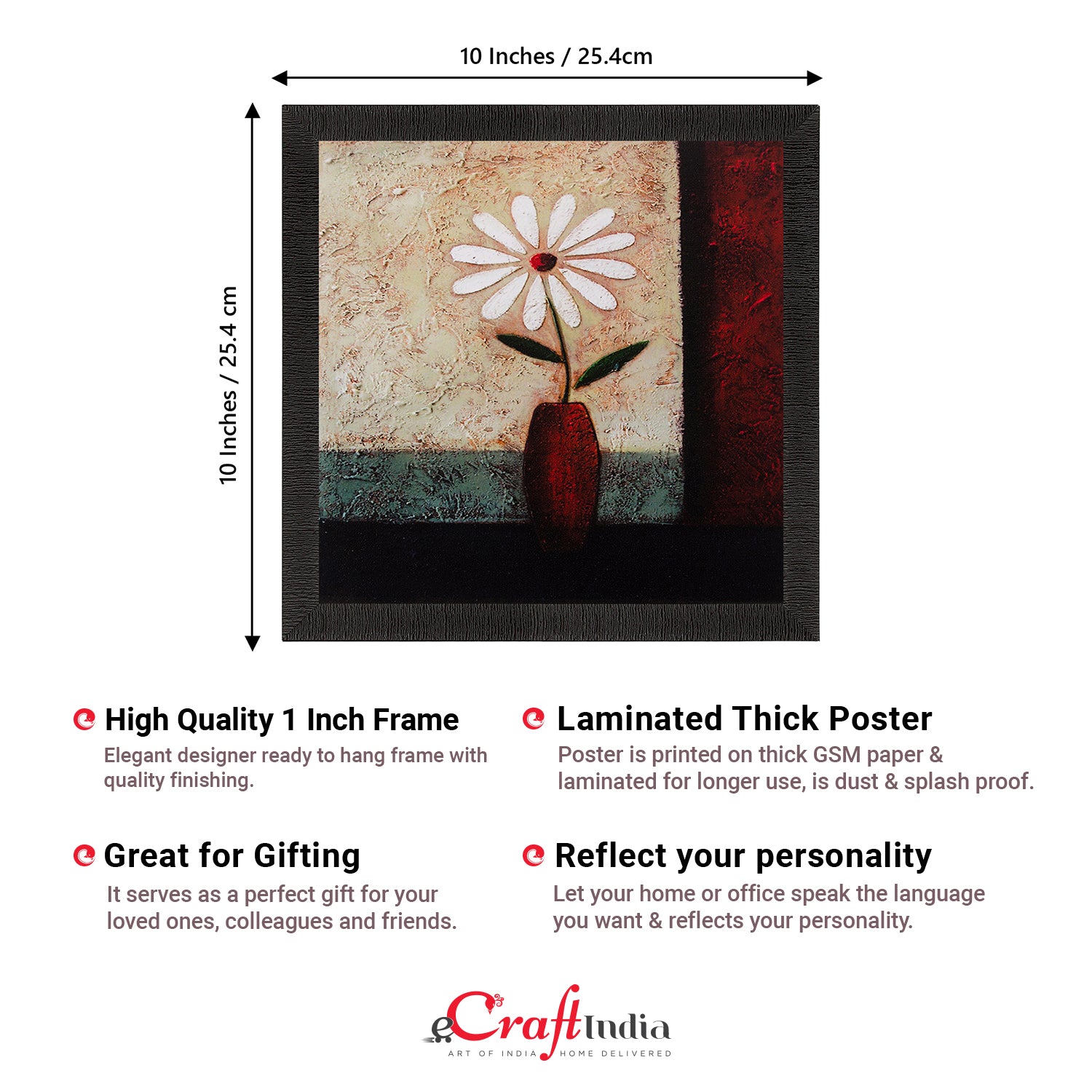 Product Description - Decorate your home & office walls with these artistic design Satin Matt Texture Framed UV Art Painting from eCraftIndia. Each design reflects the artistic qualities and time one has taken to design this painting Exquisitely printed and framed, it is also a perfect gifting option for your colleagues, loved ones and family members. These frames don't include glass so it is very light weight and wet cloth can be used to clean it.