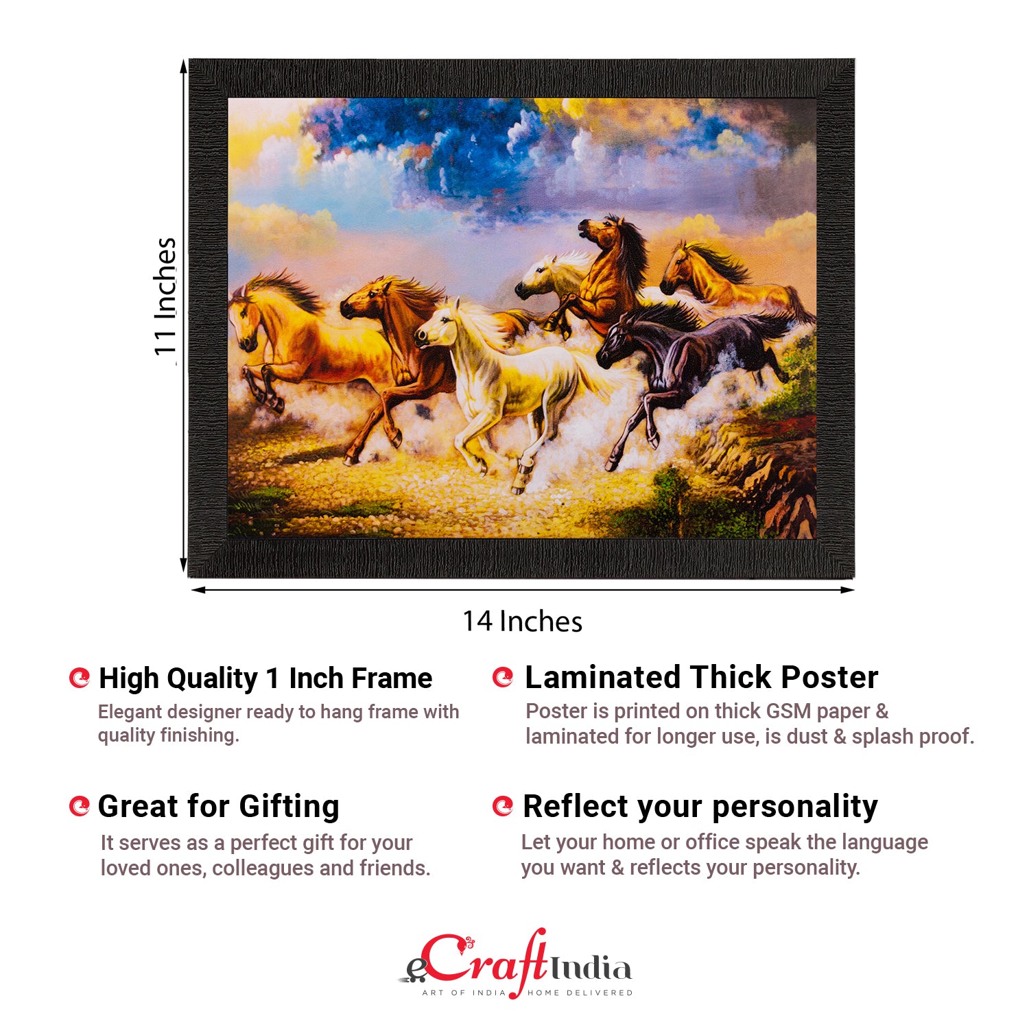 Product Description - Decorate your home & office walls with these artistic design Satin Matt Texture Framed UV Art Painting from eCraftIndia. Each design reflects the artistic qualities and time one has taken to design this painting Exquisitely printed and framed, it is also a perfect gifting option for your colleagues, loved ones and family members. These frames don't include glass so it is very light weight and wet cloth can be used to clean it.