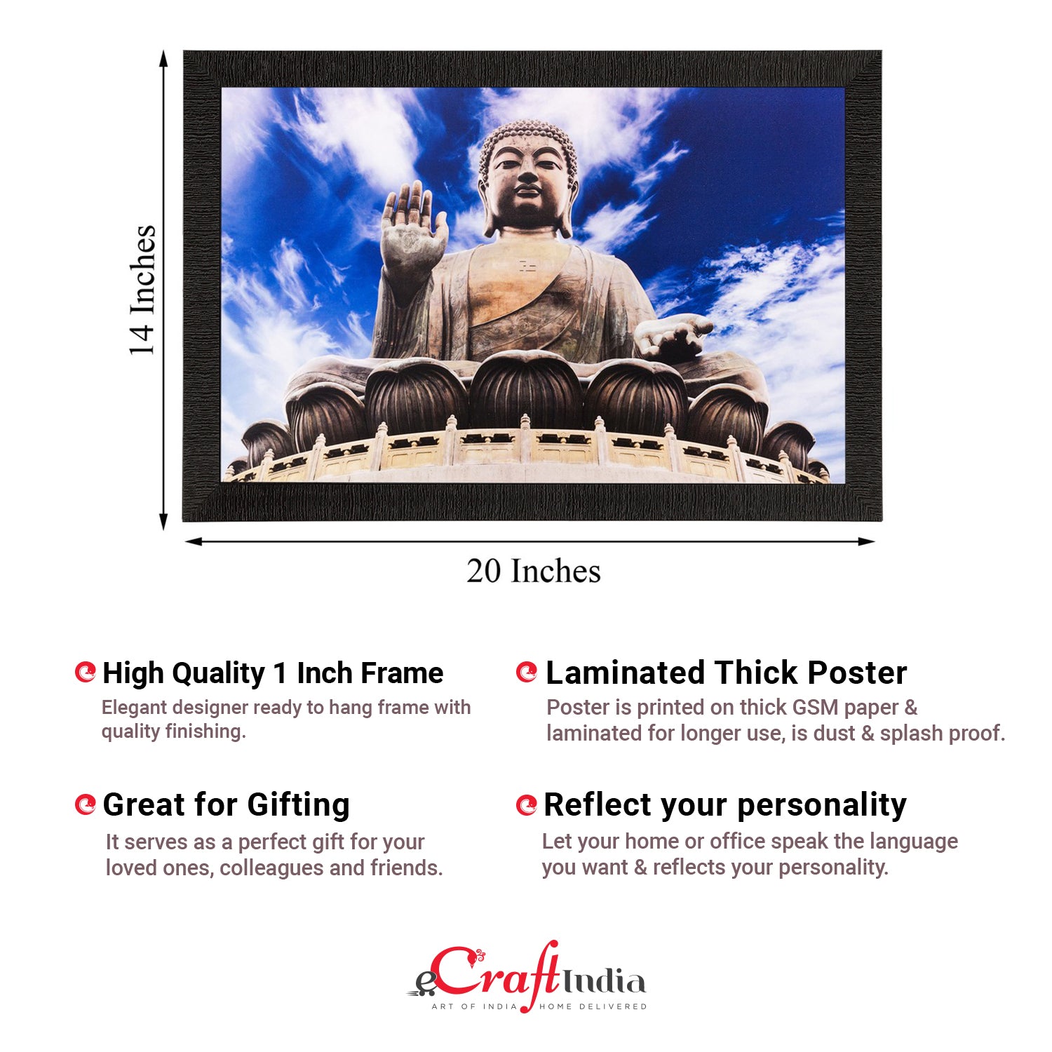 Product Description - Lord Buddha is said to hold a culture of well-being when it comes to art forms. The symbol of peace & good vibes, Lord Buddha brings good luck as well into our space be it in the form of a painting or an idol. Therefore, these framed wall paintings make a great gift option for your family & friends, especially for the ones that believe in harmony & calmness. Our Lord Buddha UV matt textured framed paintings are available in sets as well that will help you incorporate the entire wall space creatively. Each design reflects the artistic qualities and time one has taken to design this painting. These frames don't include glass so it is very lightweight and wet cloth can be used to clean them. Exquisitely printed and framed, it is also a perfect gifting option for your colleagues, loved ones, and family members.
