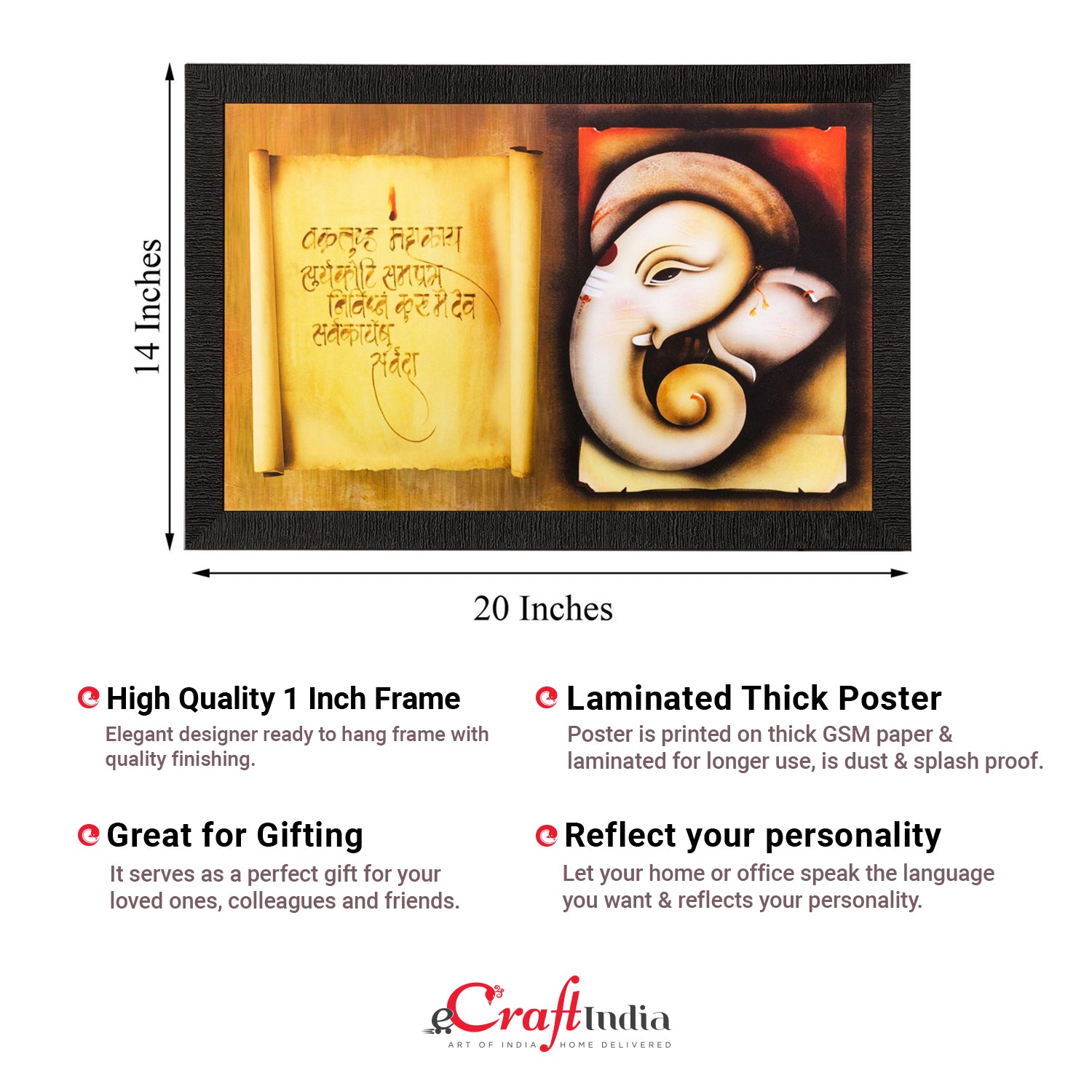 Product Description - Decorate your home & office walls with these artistic design Satin Matt Texture Framed UV Art Painting from eCraftIndia. Each design reflects the artistic qualities and time one has taken to design this painting Exquisitely printed and framed, it is also a perfect gifting option for your colleagues, loved ones and family members. These frames don't include glass so it is very light weight and wet cloth can be used to clean it.