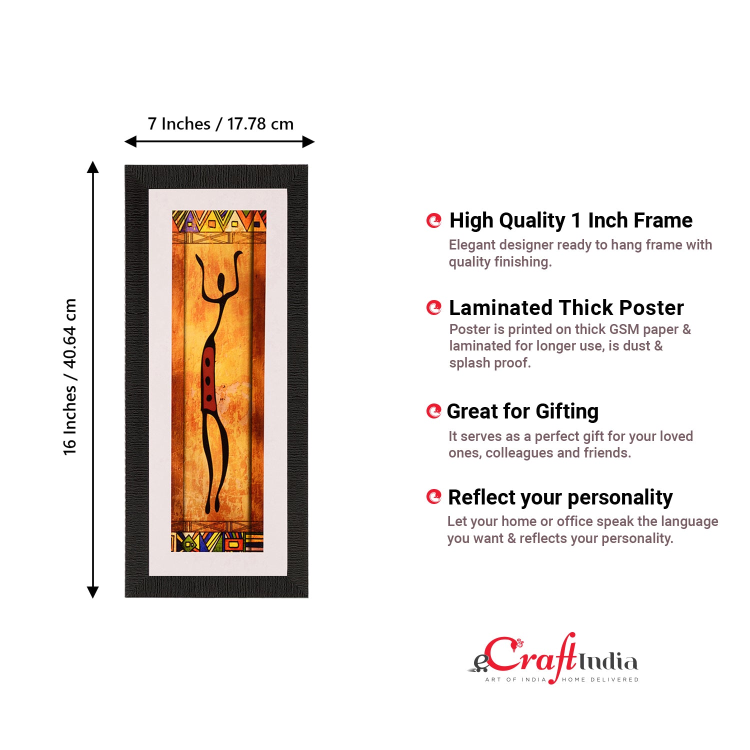 Product Description - Decorate your home & office walls with these artistic design Satin Matt Texture Framed UV Art Painting from eCraftIndia. Each design reflects the artistic qualities and time one has taken to design this painting Exquisitely printed and framed, it is also a perfect gifting option for your colleagues, loved ones and family members. These frames don't include glass so it is very light weight and wet cloth can be used to clean it.