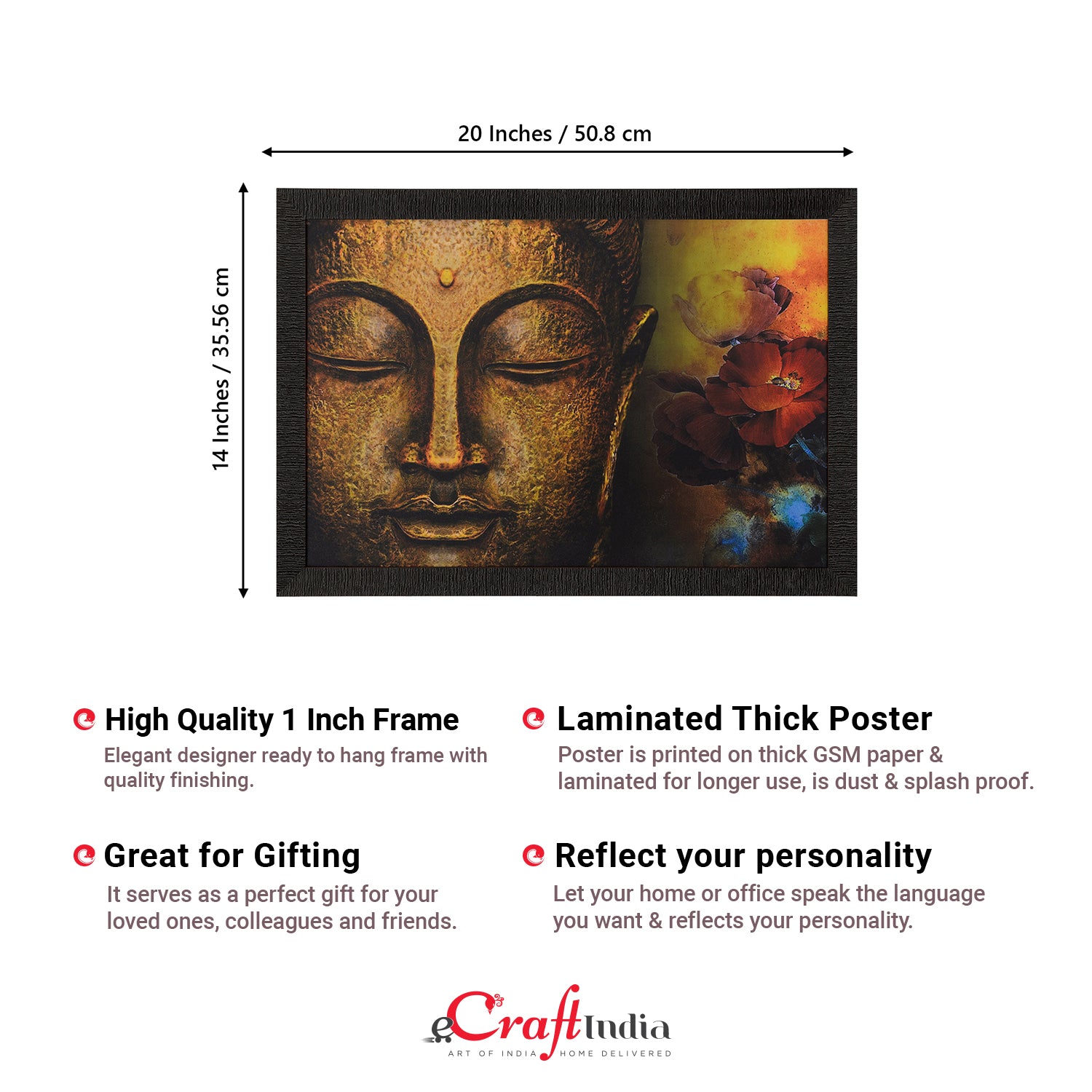 Product Description - Decorate your home & office walls with these artistic design Satin Matt Texture Framed UV Art Painting from eCraftIndia. Each design reflects the artistic qualities and time one has taken to design this painting Exquisitely printed and framed, it is also a perfect gifting option for your colleagues, loved ones and family members. These frames don't include glass so it is very light weight and wet cloth can be used to clean it.