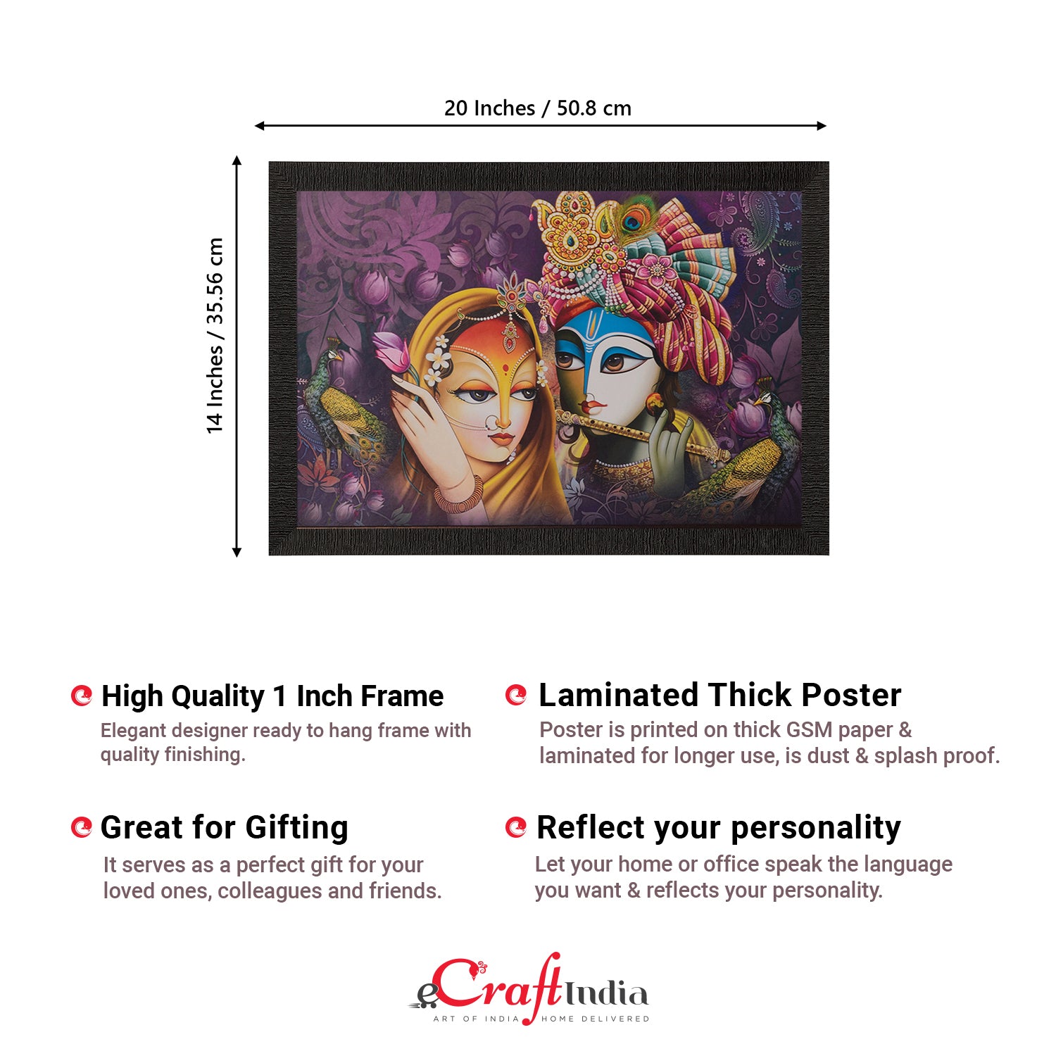 Product Description - Decorate your home & office walls with these artistic design Satin Matt Texture Framed UV Art Painting from eCraftIndia. Each design reflects the artistic qualities and time one has taken to design this painting Exquisitely printed and framed, it is also a perfect gifting option for your colleagues, loved ones and family members. These frames don't include glass so it is very light weight and wet cloth can be used to clean it.