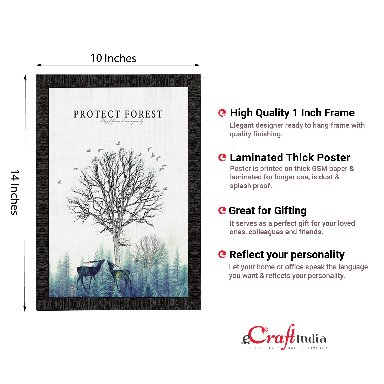 Product Description - Decorate your home & office walls with these artistic design Satin Matt Texture Framed UV Art Painting from eCraftIndia. Each design reflects the artistic qualities and time one has taken to design this painting. Exquisitely printed and framed, it is also a perfect gifting option for your colleagues, loved ones and family members. These frames don't include glass so it is very light weight and wet cloth can be used to clean it.