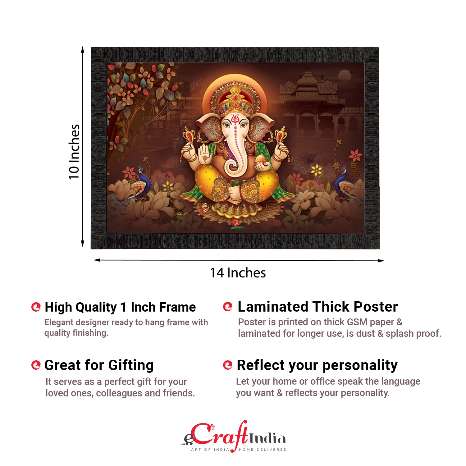 Product Description - Decorate your home & office walls with these artistic design Satin Matt Texture Framed UV Art Painting from eCraftIndia. Each design reflects the artistic qualities and time one has taken to design this painting Exquisitely printed and framed, it is also a perfect gifting option for your colleagues, loved ones and family members. These frames don't include glass so it is very light weight and wet cloth can be used to clean it.