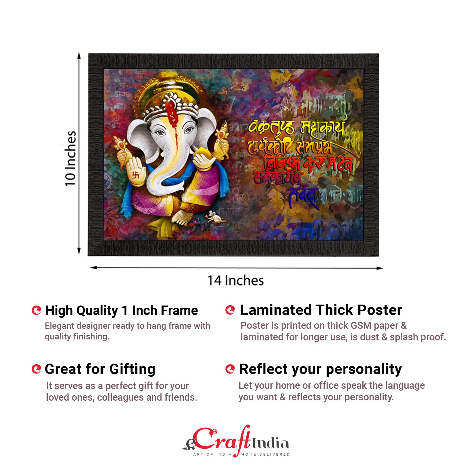Product Description - Decorate your home & office walls with these artistic design Satin Matt Texture Framed UV Art Painting from eCraftIndia. Each design reflects the artistic qualities and time one has taken to design this painting. Exquisitely printed and framed, it is also a perfect gifting option for your colleagues, loved ones and family members. These frames don't include glass so it is very light weight and wet cloth can be used to clean it.