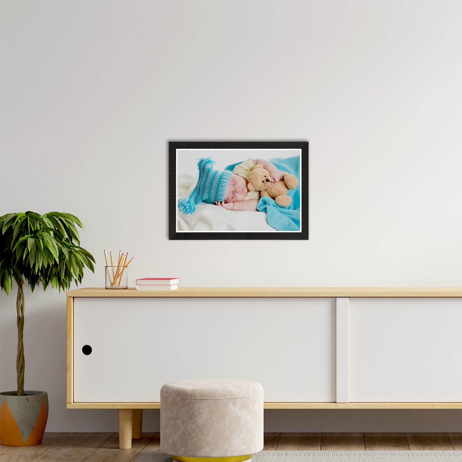 Product Description - Cute Baby paintings are the best sight to look at, aren't they? These framed paintings are the best for moms-to-be for their bedroom walls and are one of the best gifting options for them. Our Baby Figurative UV matt textured framed paintings are available in various orientations, and sets as well that will help you incorporate the wall space creatively. These frames don't include glass so it is very lightweight and wet cloth can be used to clean them. Each design reflects the artistic qualities and time one has taken to design this wall art framed painting.