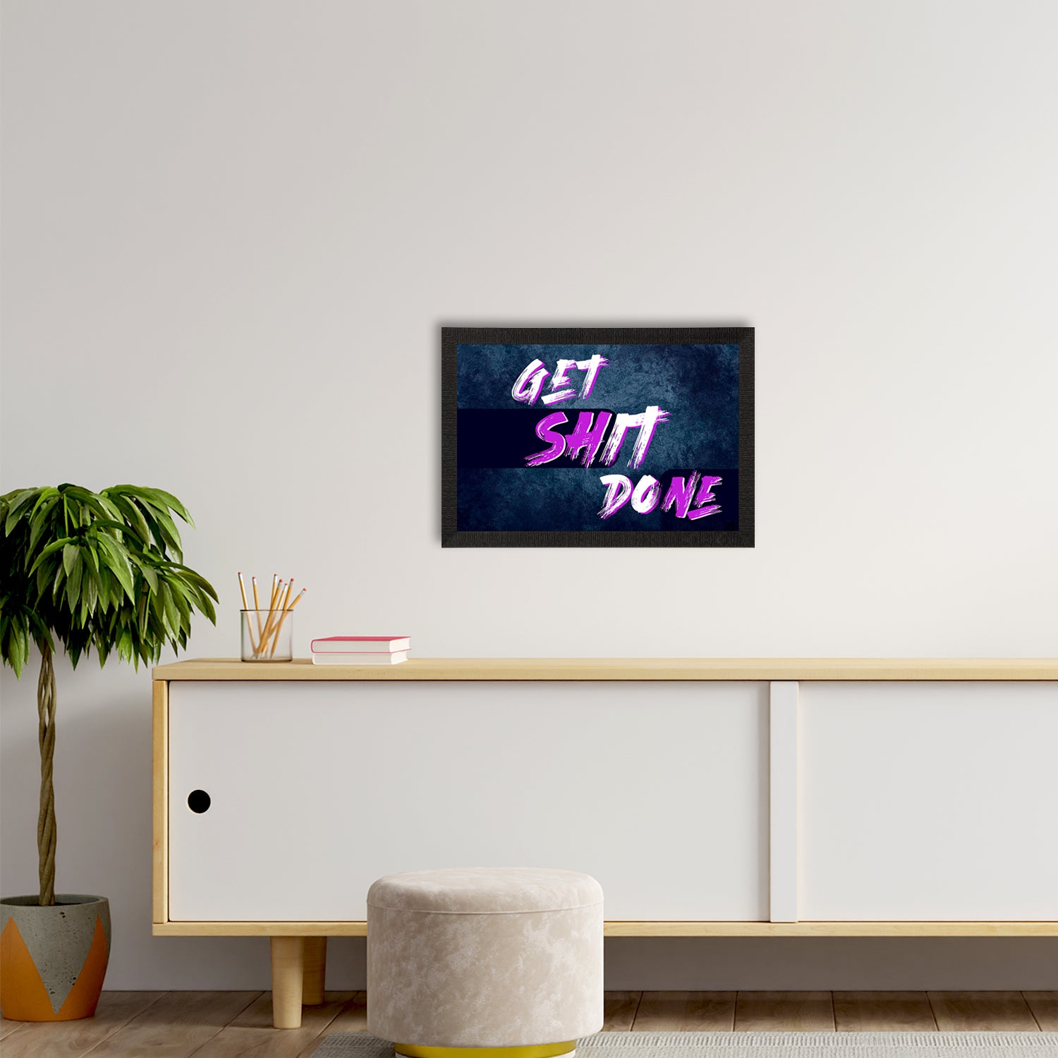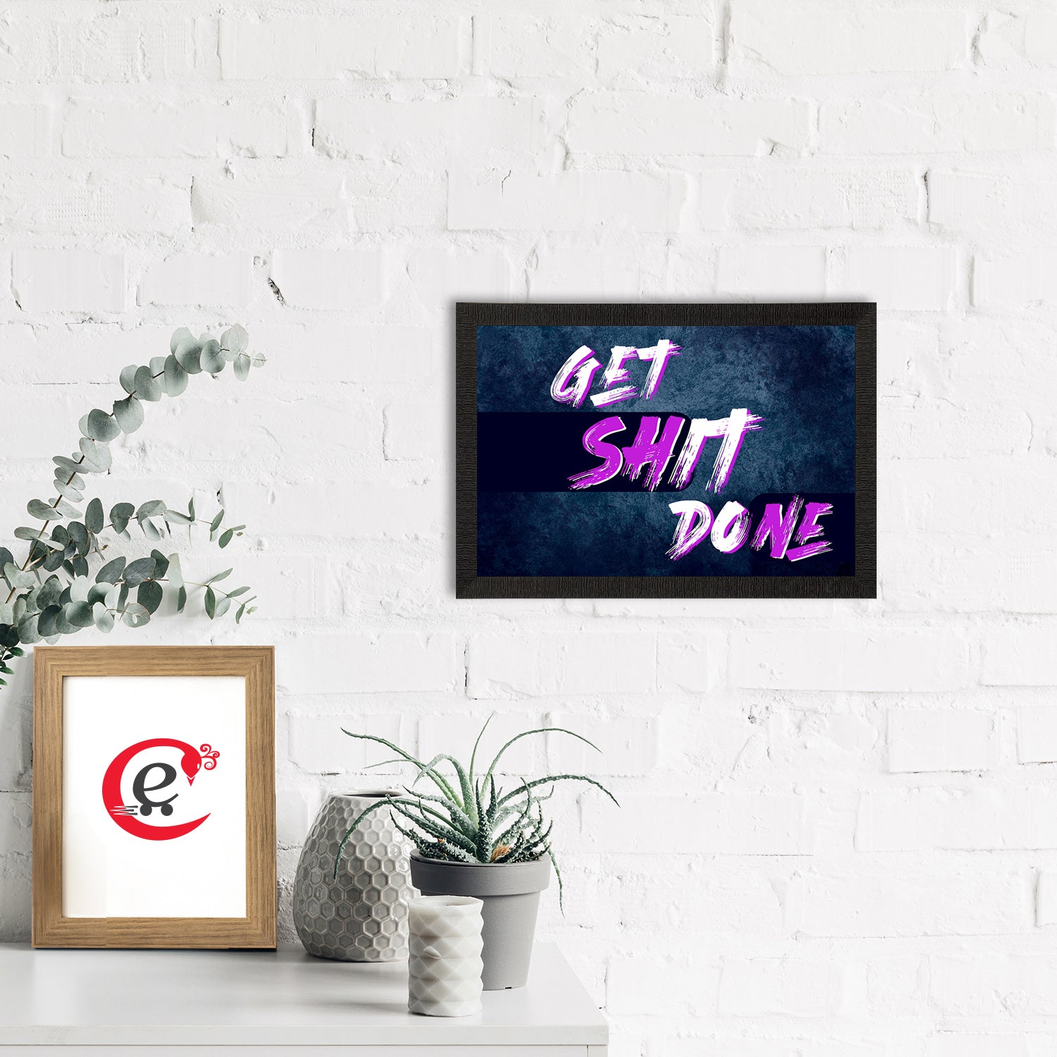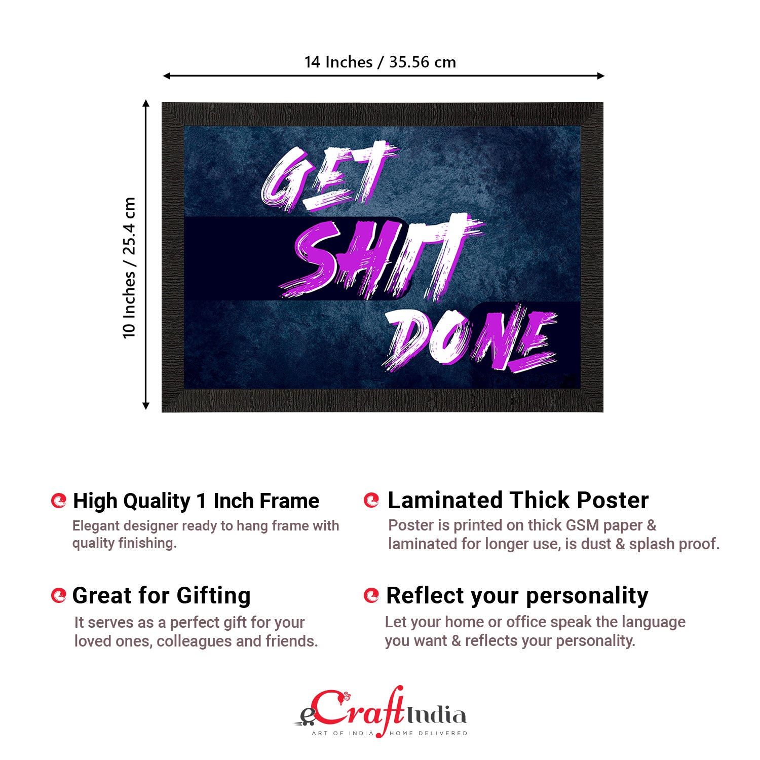 Product Description - Decorate your home & office walls with this artistic design eCraftIndia "Get Shit Done" Motivational Quote Satin Matt Texture UV Art Painting. Each design reflects the artistic qualities and time one has taken to design this painting. Exquisitely printed and framed, it is also a perfect gifting option for your colleagues, loved ones and family members. These frames don't include glass so it is very light weight and wet cloth can be used to clean it.